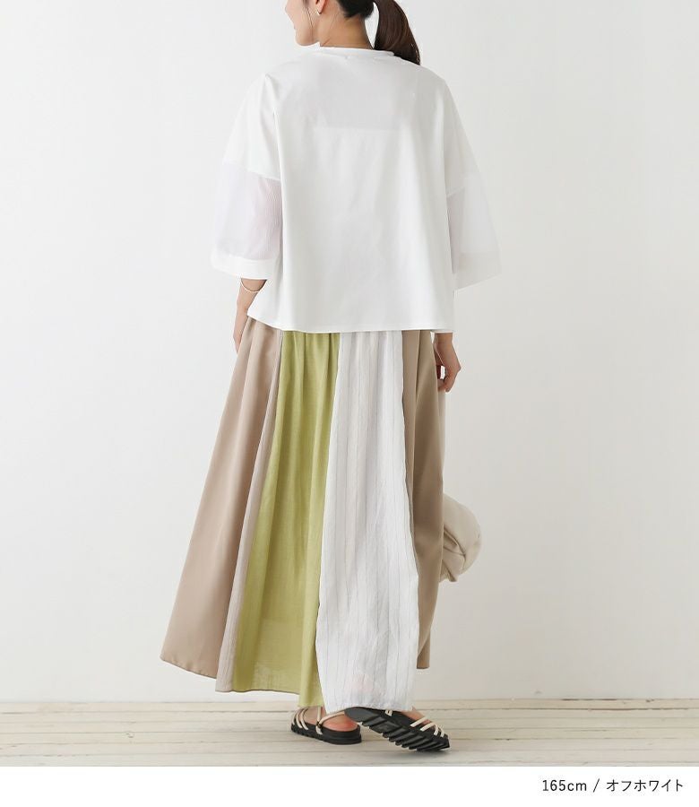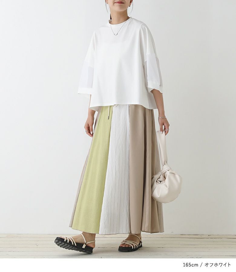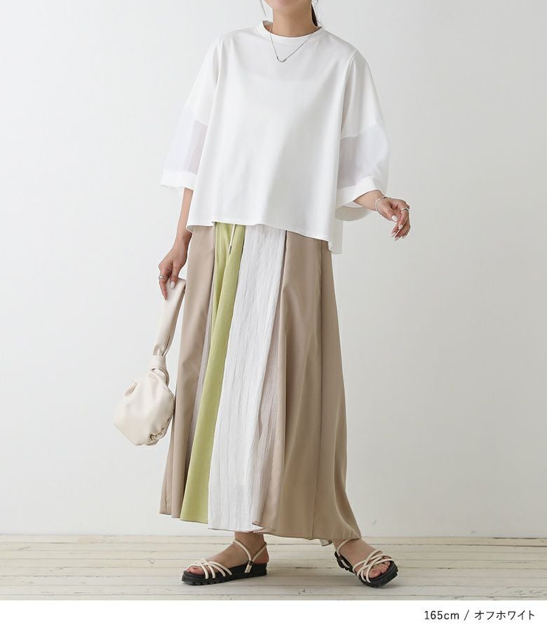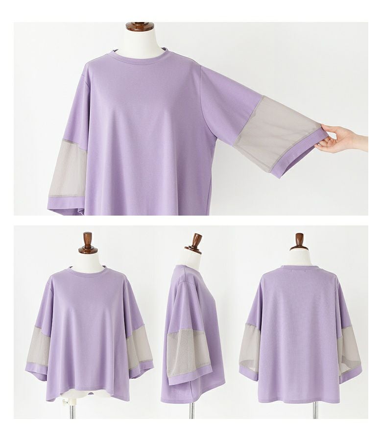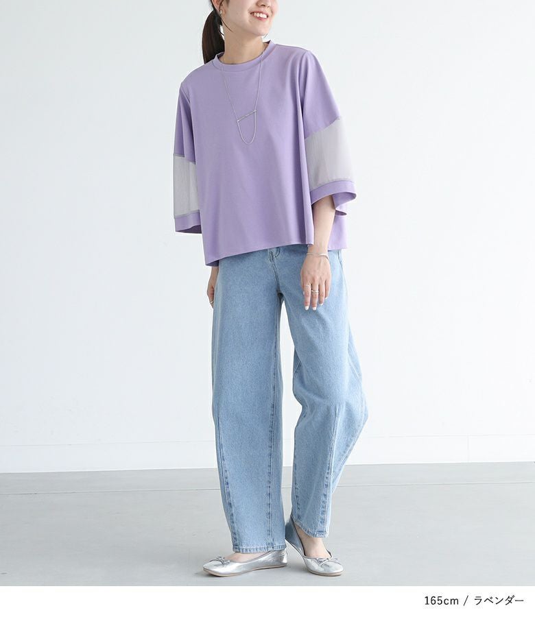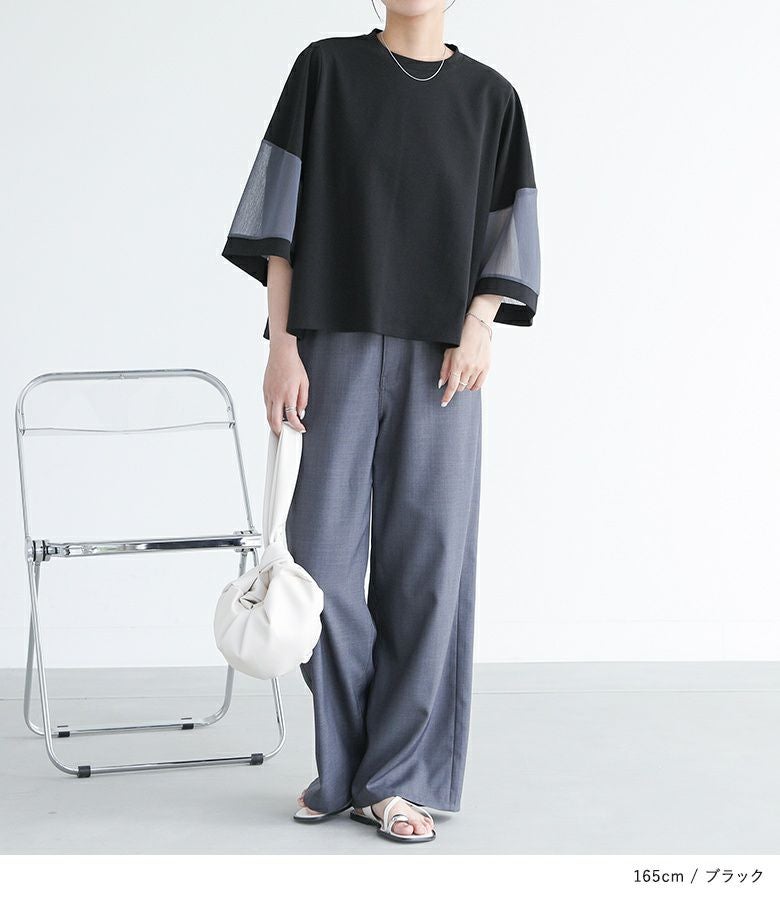 見た目も着心地も涼し気な袖シアー切り替えカットソー。