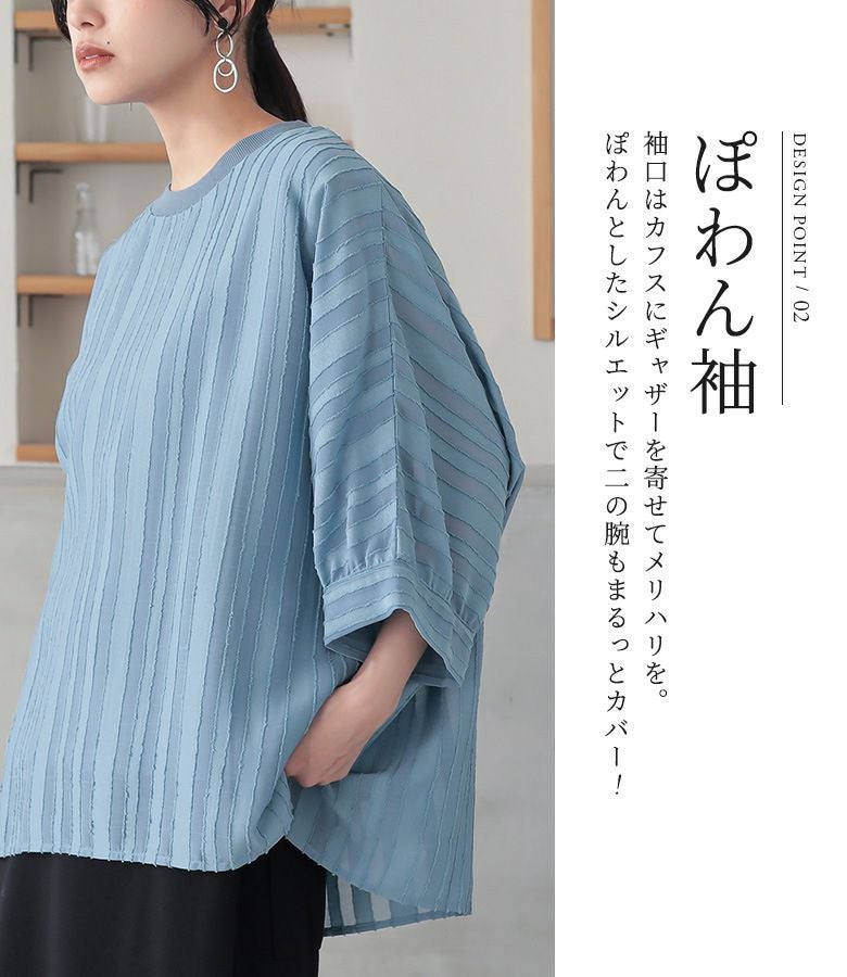 七分袖くらいの袖の長さでロングシーズン楽しめそうです。