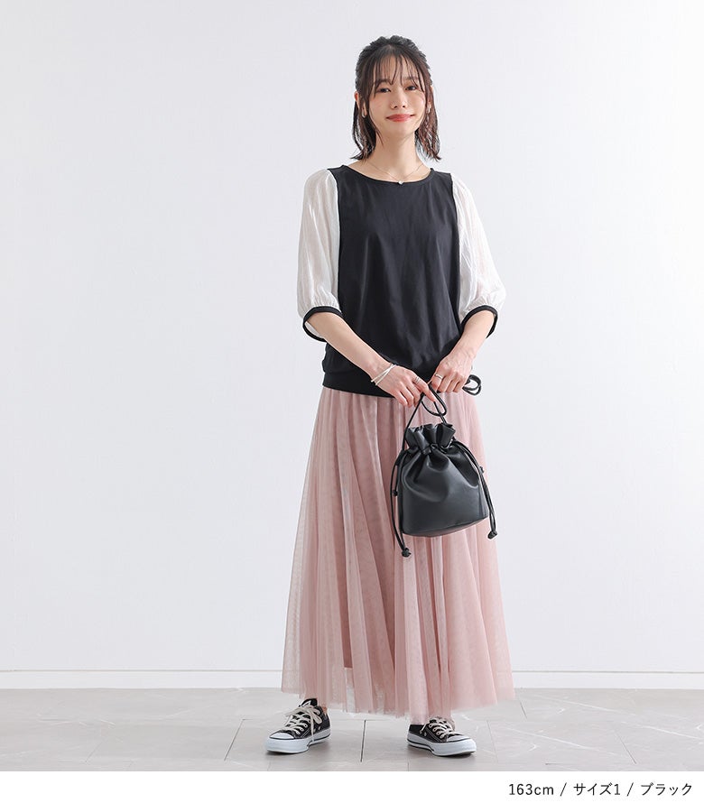 他の画像を見る 【70%OFF】二層仕立てのチュールが、繊細なシアー感を演出するトップス。 『n'OrLABELランタンスリーブチュールトップス』※返品交換不可※※メール便可※【5】 定価 ¥ 4,980 のところ ¥ 1,493 税込 4.00 (1)