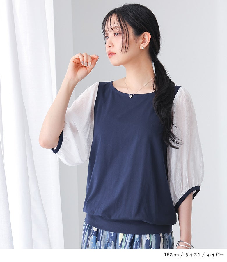 他の画像を見る 【40%OFF】選べるM~3Lサイズ展開!透け感あるボリュームスリーブがポイントのカットソー。 『n'OrLABELシアーボリュームスリーブカットソー』※返品交換不可※※メール便可※【10】 定価 ¥ 4,980 のところ ¥ 2,987 税込 4.50 (8)