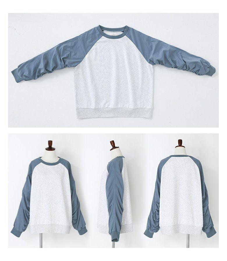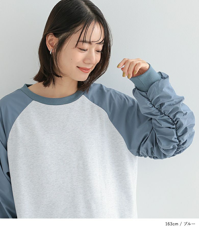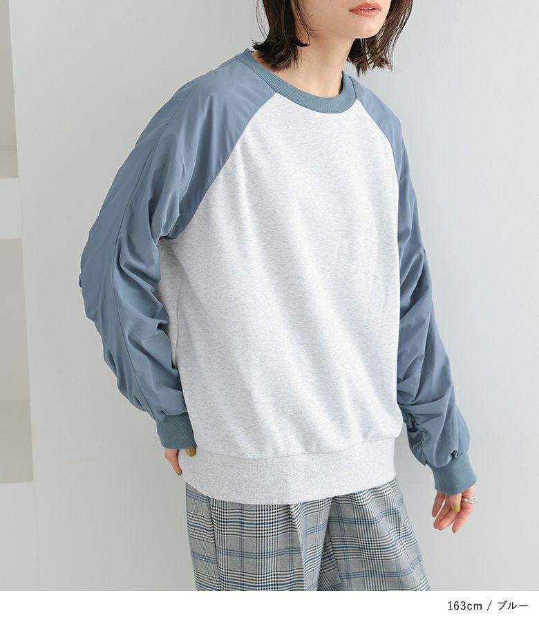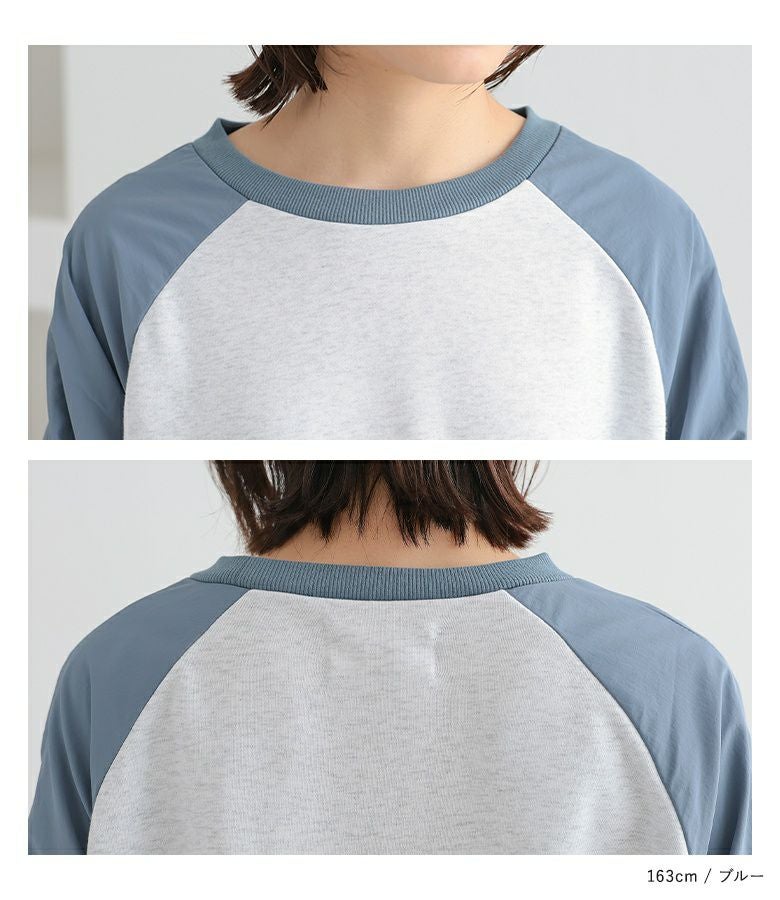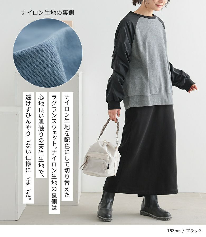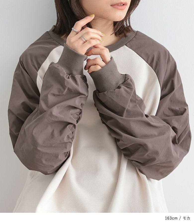 【60%OFF】ナイロン生地を配色にして切り替えたラグランスウェット。