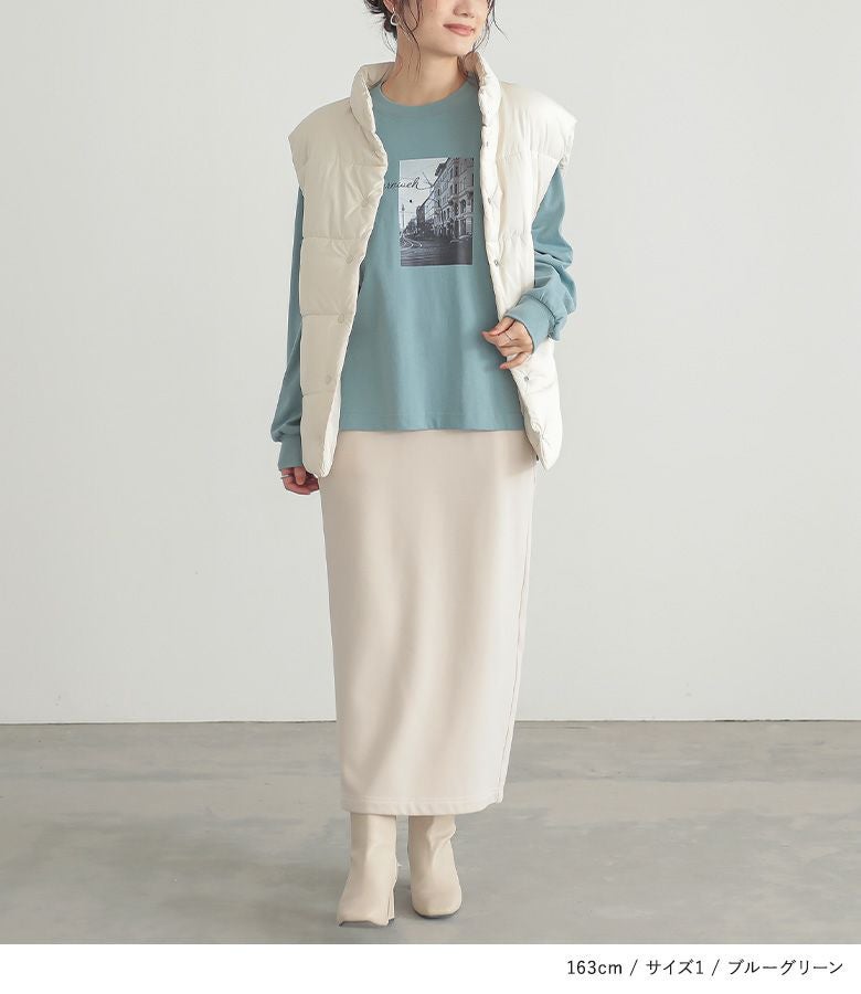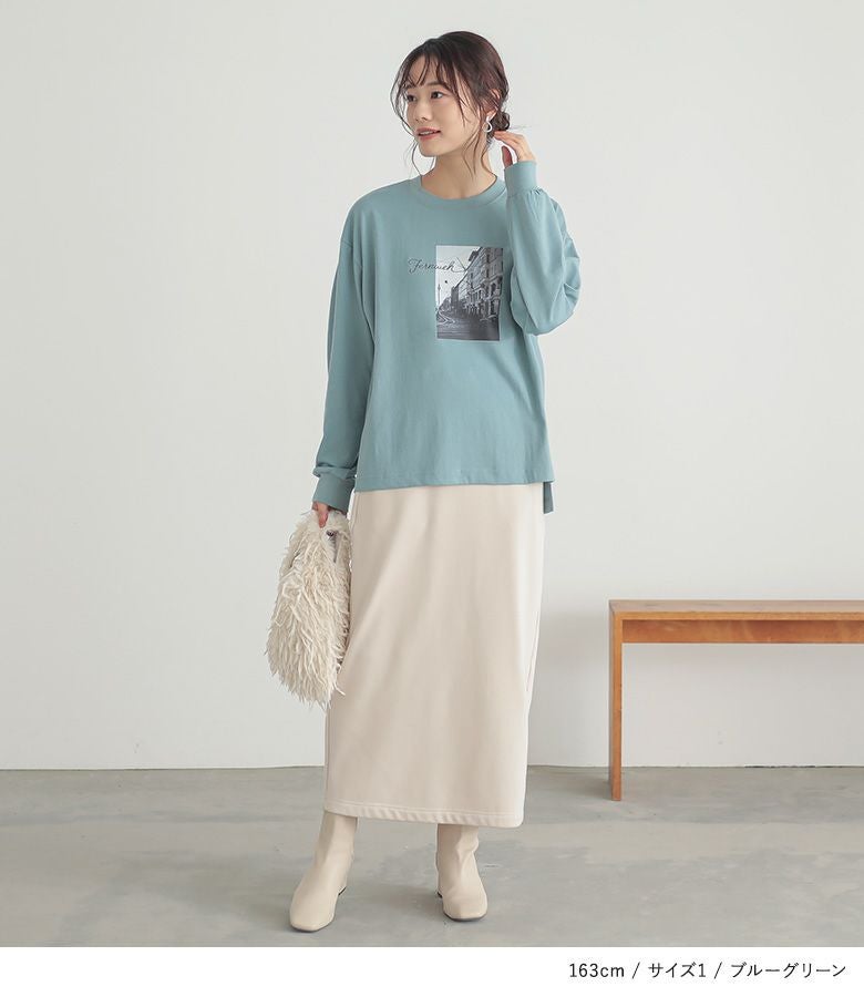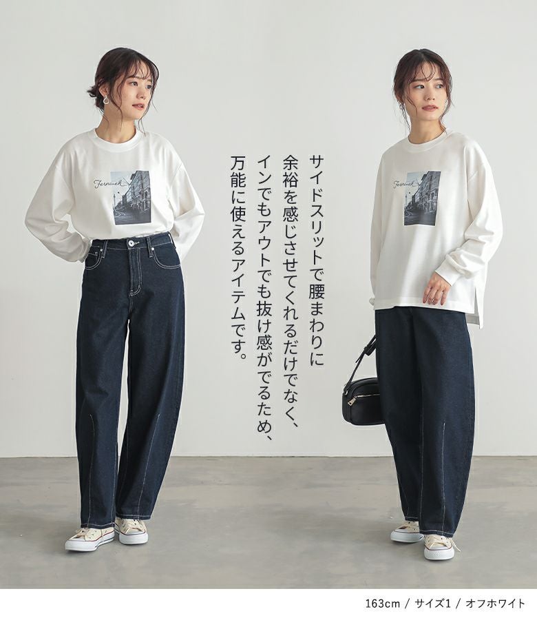 【普段着用】 Tops: L/LL Bottoms: L/LL | 【1】 袖丈:手の甲が隠れる位 着丈:ヒップ下少し見える位 腕周り:ややゆったり バスト:ややゆったり 全体:スッキリ