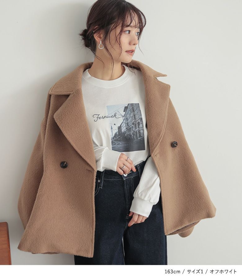 【2】 袖丈:指先が少し見える位 着丈:ヒップがちょうど隠れる位 腕周り:ゆったり バスト:ゆったり 全体:ゆったり