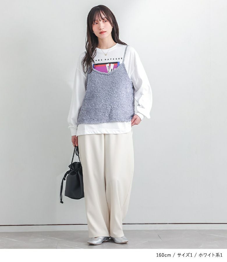 【普段着用】 Tops: L/LL Bottoms: L/LL | 【2】 袖丈:手首位 着丈:ヒップ真ん中より下位 腕周り:ややゆったり バスト:ジャスト 全体:ジャスト