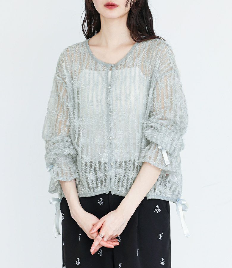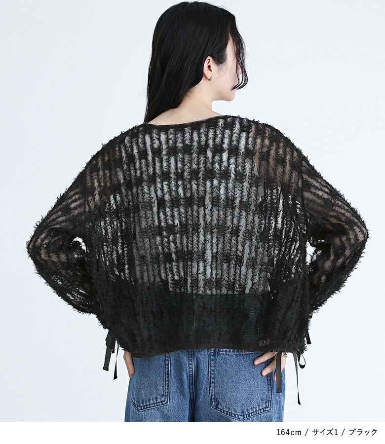【2】 袖丈:指の真ん中位 着丈:ヒップにかかる位 腕周り:ゆったり バスト:ややゆったり 全体:ややゆったり
