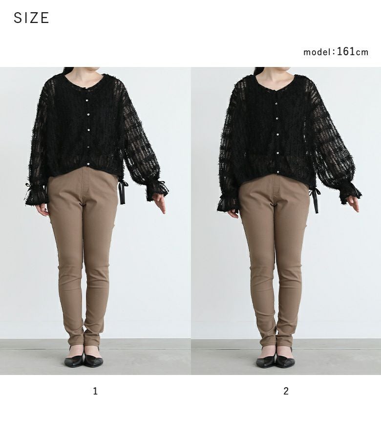 【普段着用】 Tops: L/LL Bottoms: L/LL | 【1】 袖丈:手の甲にかかる位 着丈:ヒップ上3cm位 腕周り:ややゆったり バスト:ややゆったり 全体:ジャスト