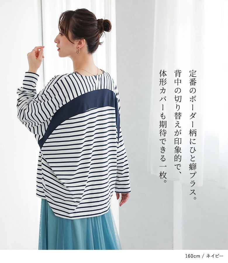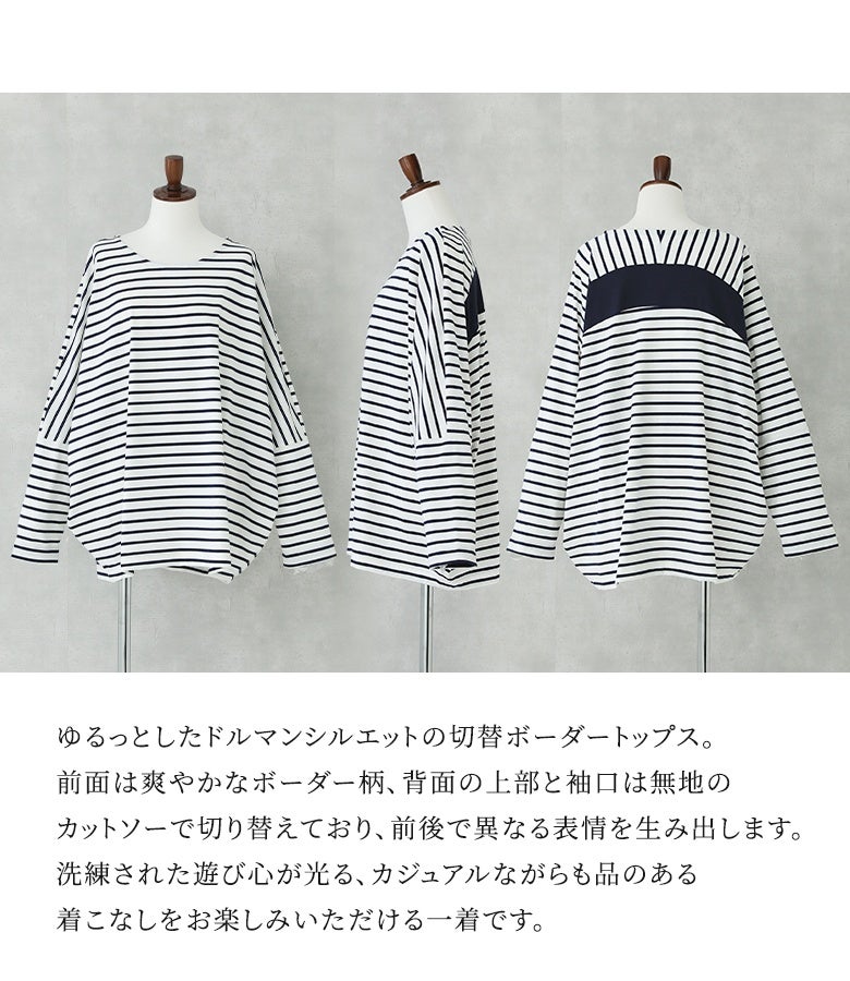 『n'OrLABEL切替配色ボーダードルマントップス』