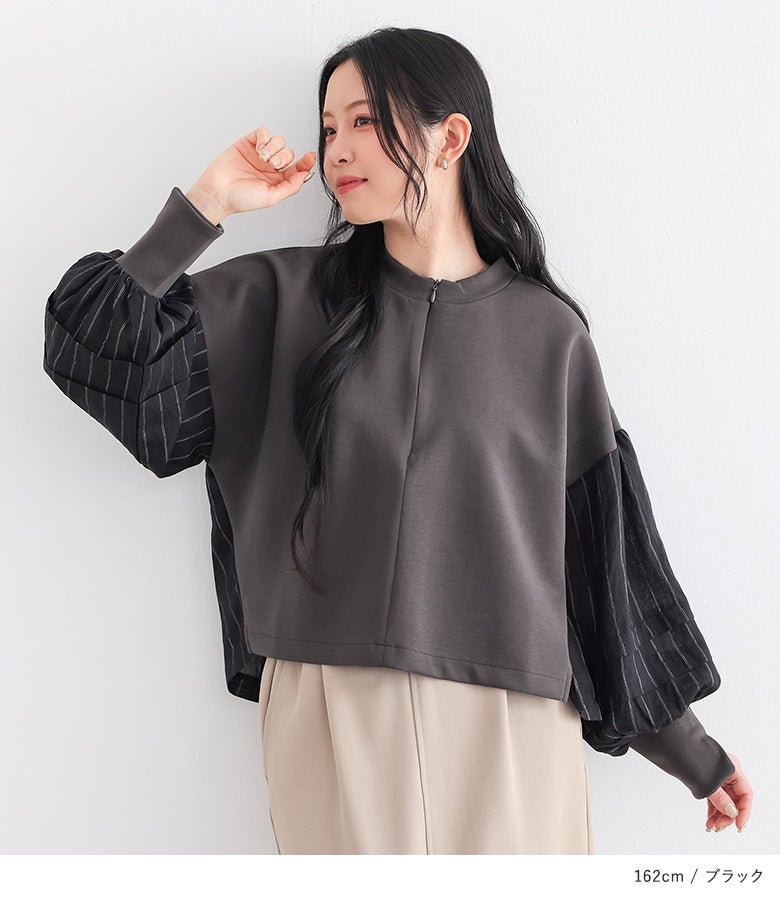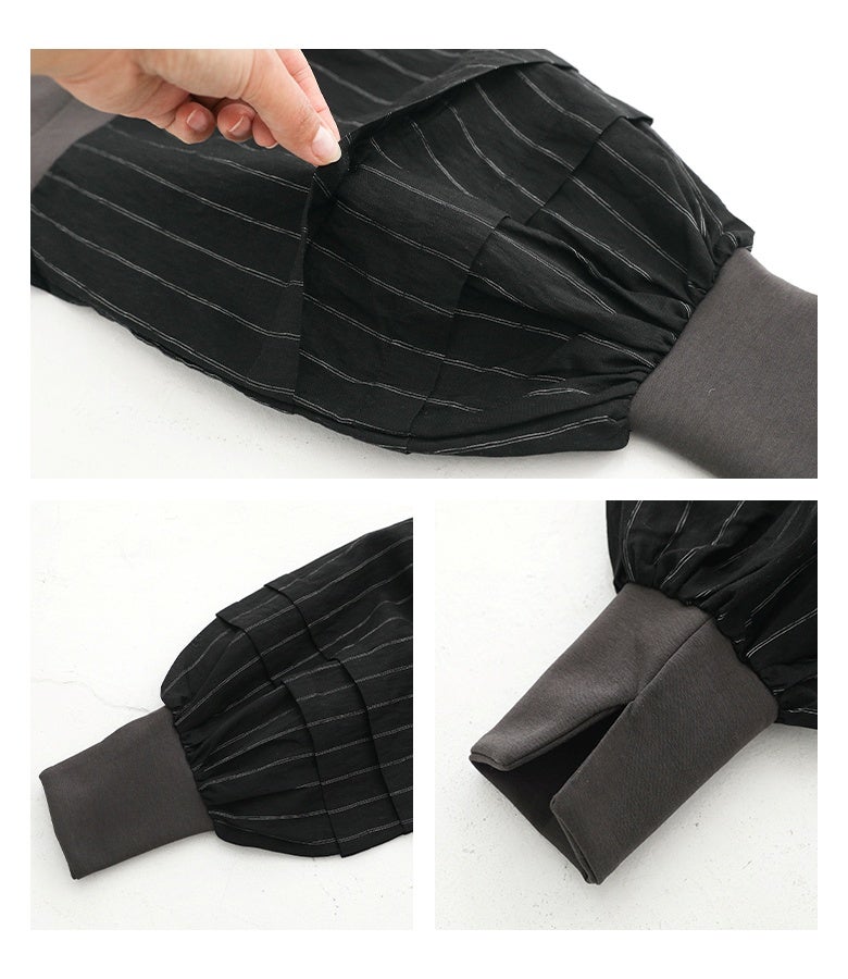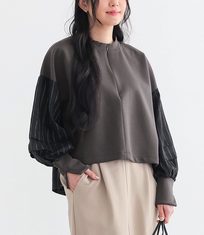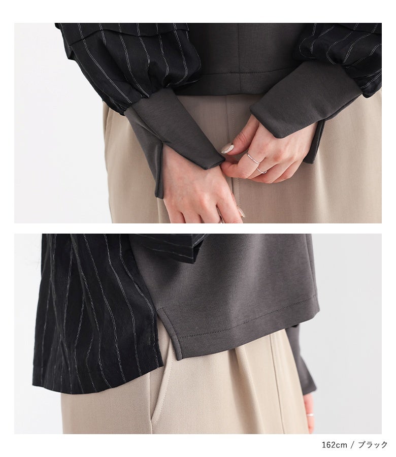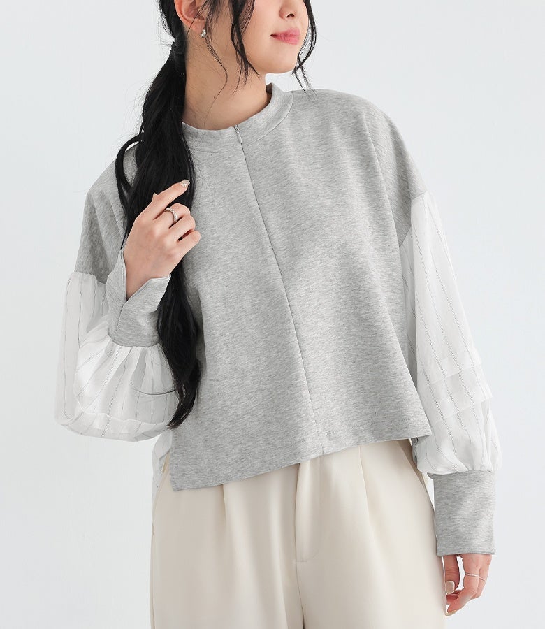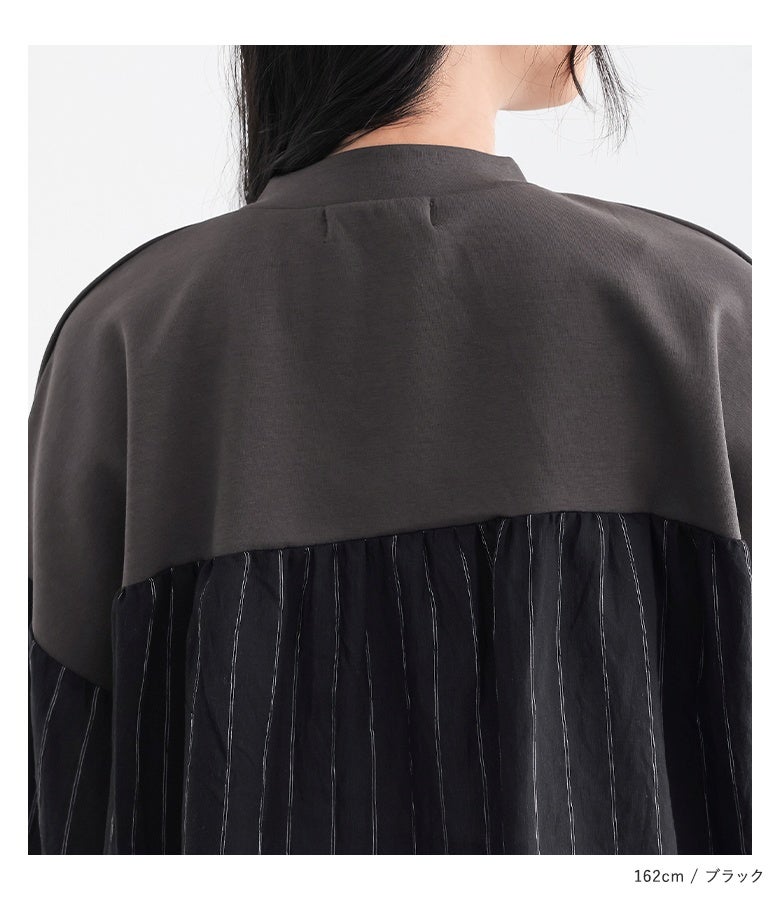 大人が似合うシアーストライプシャツドッキングプルオーバー。
