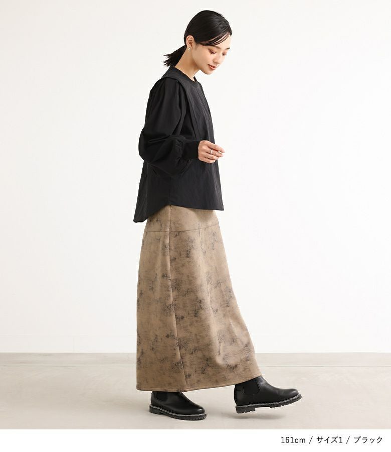 【普段着用】 Tops: M Bottoms: M/L | 【1】 袖丈:手の甲にかかる位 着丈:ヒップ真ん中より下位 腕周り:ゆったり バスト:ゆったり 全体:スッキリ