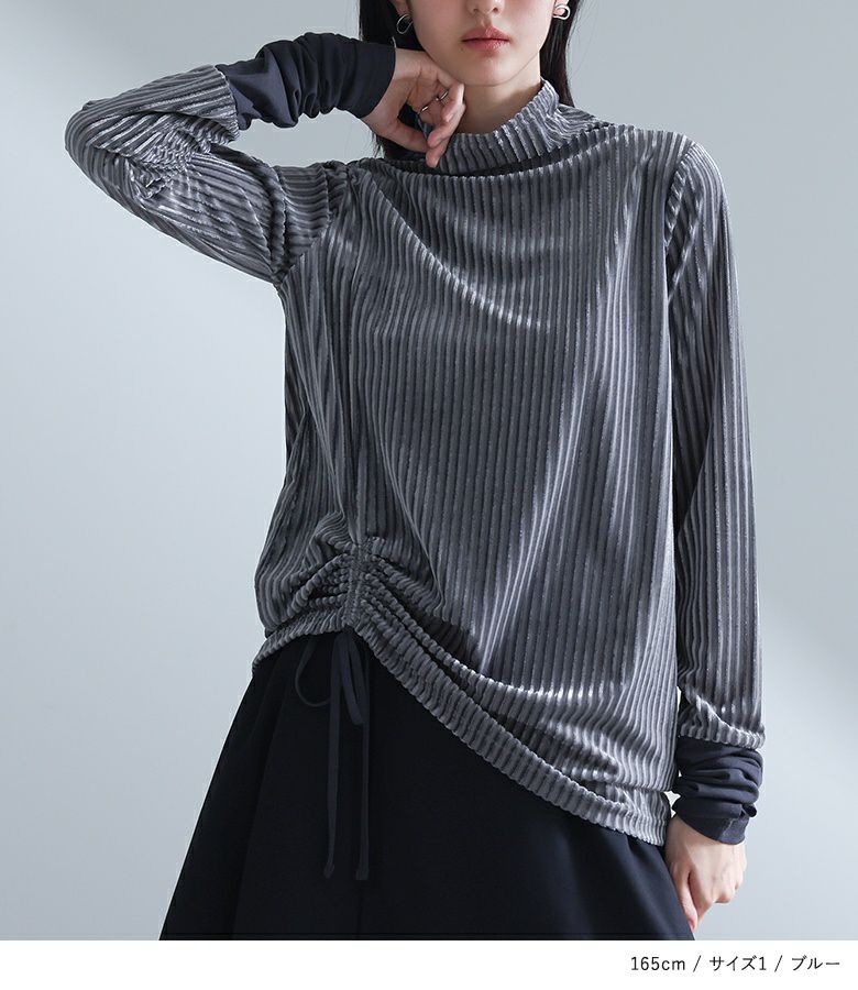 【普段着用】 Tops: L/LL Bottoms: L/LL | 【1】 袖丈:指先が少し見える位 着丈:ヒップ真ん中位 腕周り:少しタイト バスト:少しタイト 全体:タイト