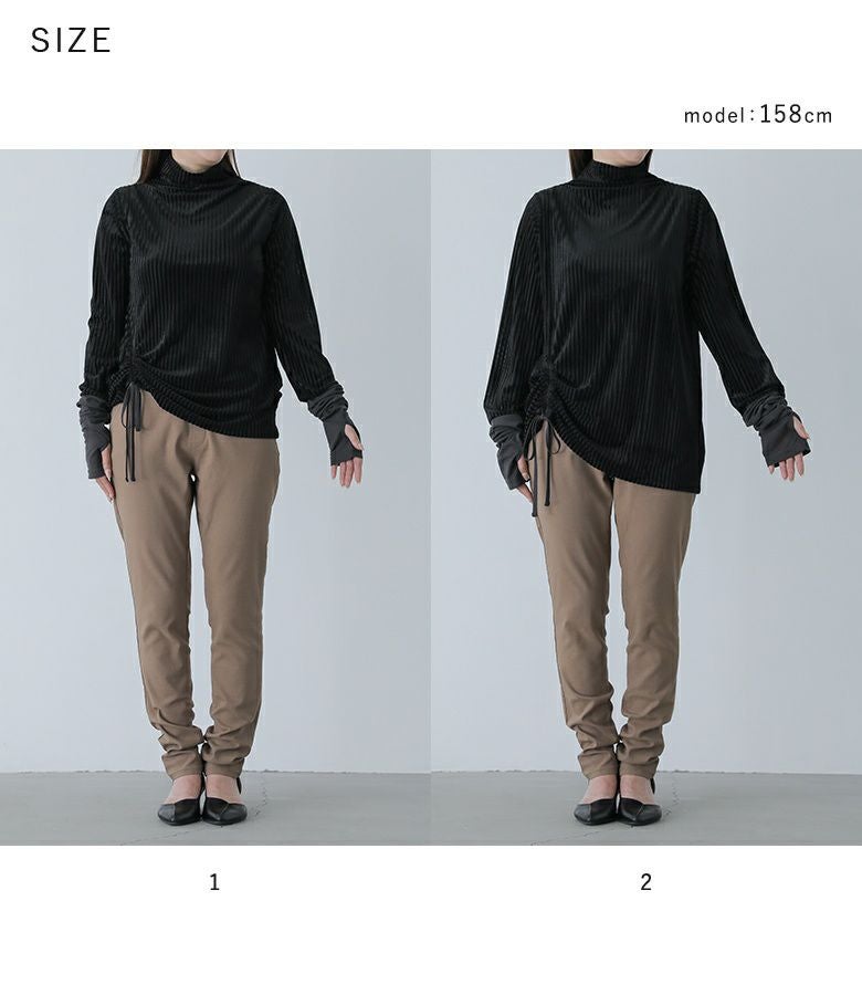 【普段着用】 Tops: M Bottoms: S/M | 【1】 袖丈:手首位 着丈:ヒップ真ん中位 腕周り:ややゆったり バスト:ややゆったり 全体:ややゆったり