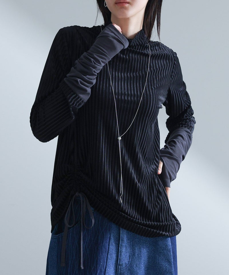【普段着用】 Tops: M Bottoms: M/L | 【1】 袖丈:手首位 着丈:ヒップ真ん中より上位 腕周り:ジャスト バスト:ややゆったり 全体:スッキリ