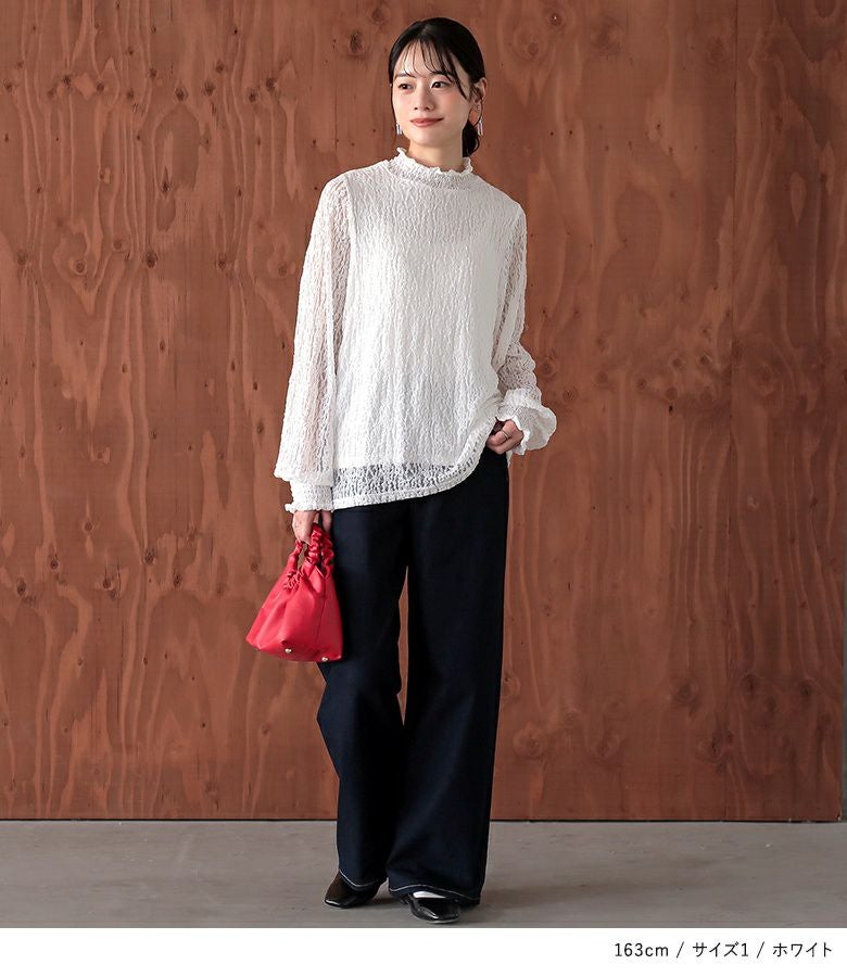 【普段着用】 Tops: LL Bottoms:LL | 【1】 袖丈:手の甲真ん中位 着丈:ヒップ真ん中位 腕周り:ややゆったり バスト:ジャスト 全体:ジャスト