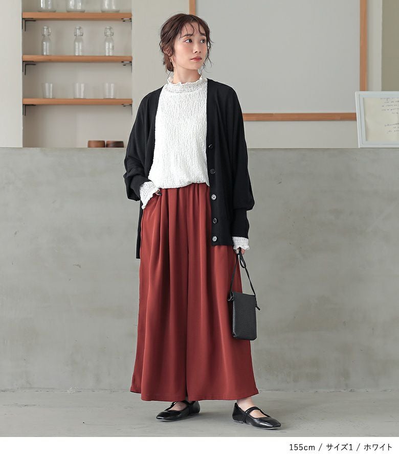 【普段着用】 Tops: M Bottoms: M | 【1】 袖丈:手の甲が隠れる位 着丈:ヒップ下少し見える位 腕周り:ゆったり バスト:ややゆったり 全体:ややゆったり