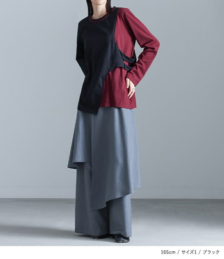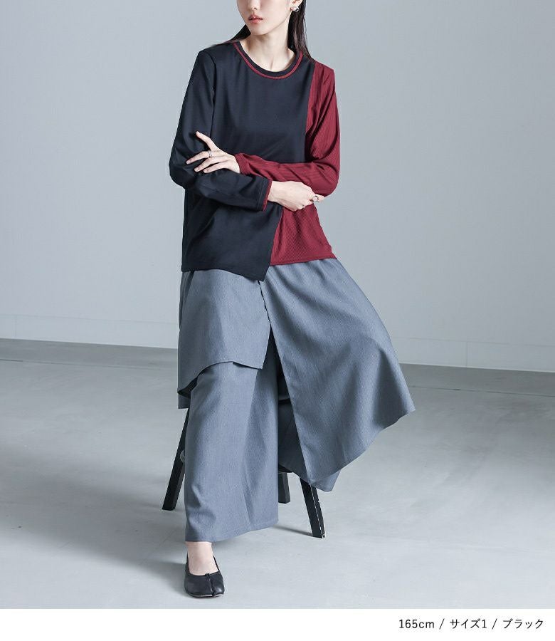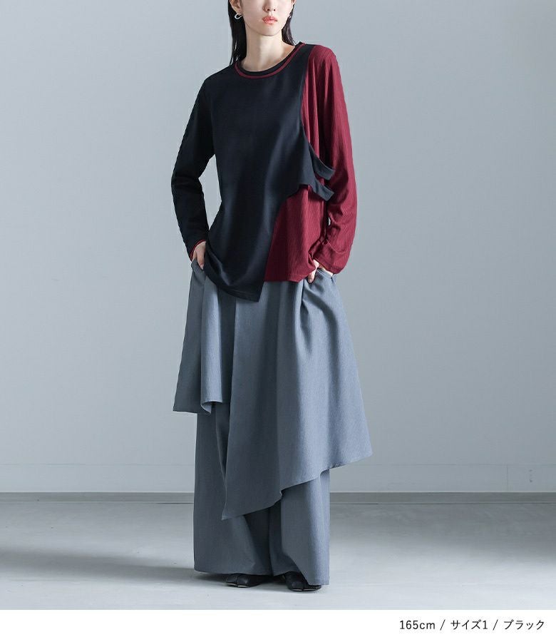 ゆったり着用できました。レイヤードしたようなデザインでボトムスを選ばずおしゃれに着こなせます。