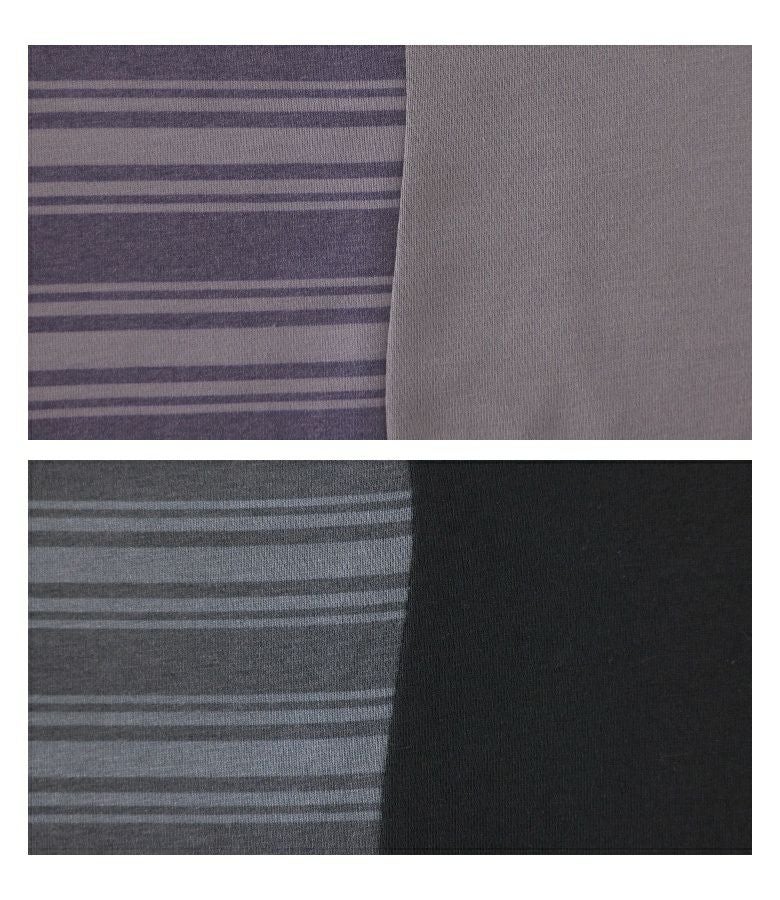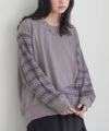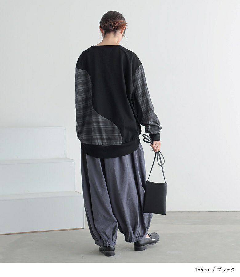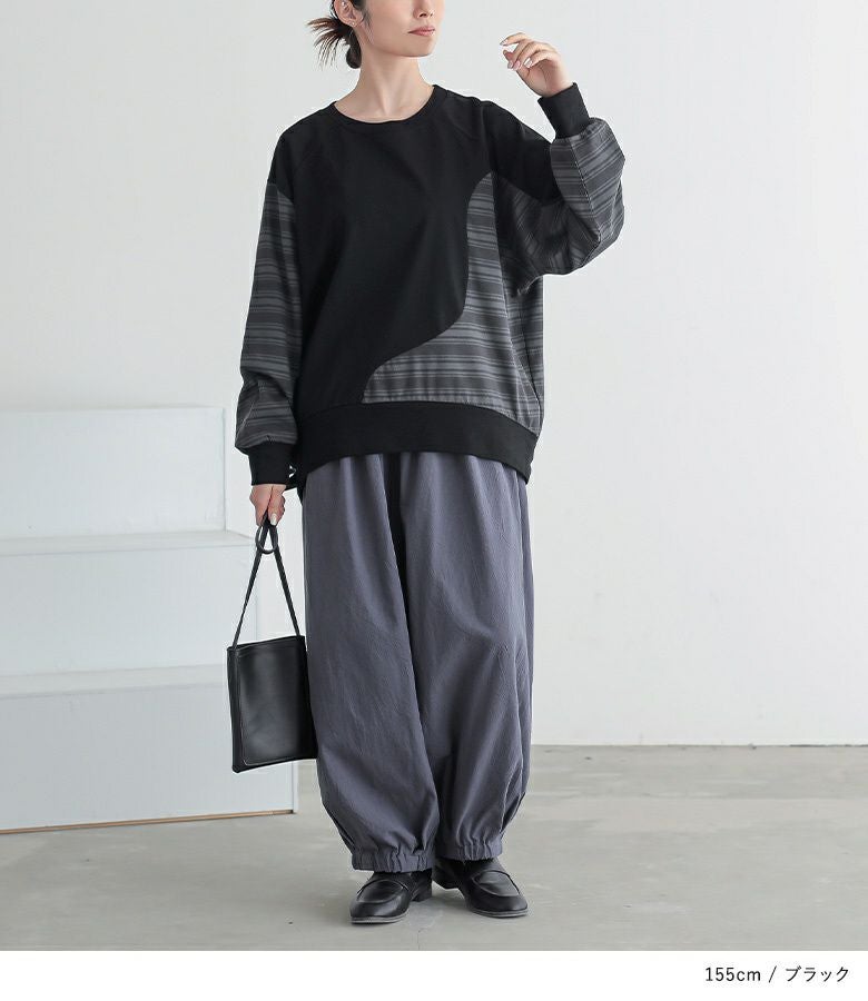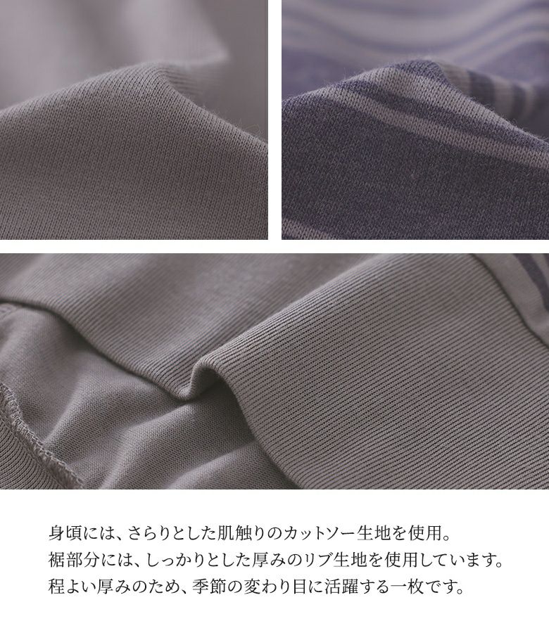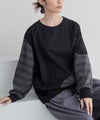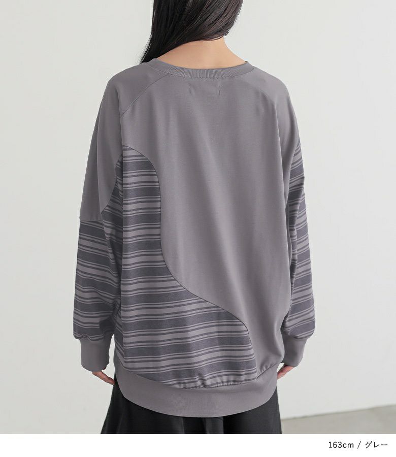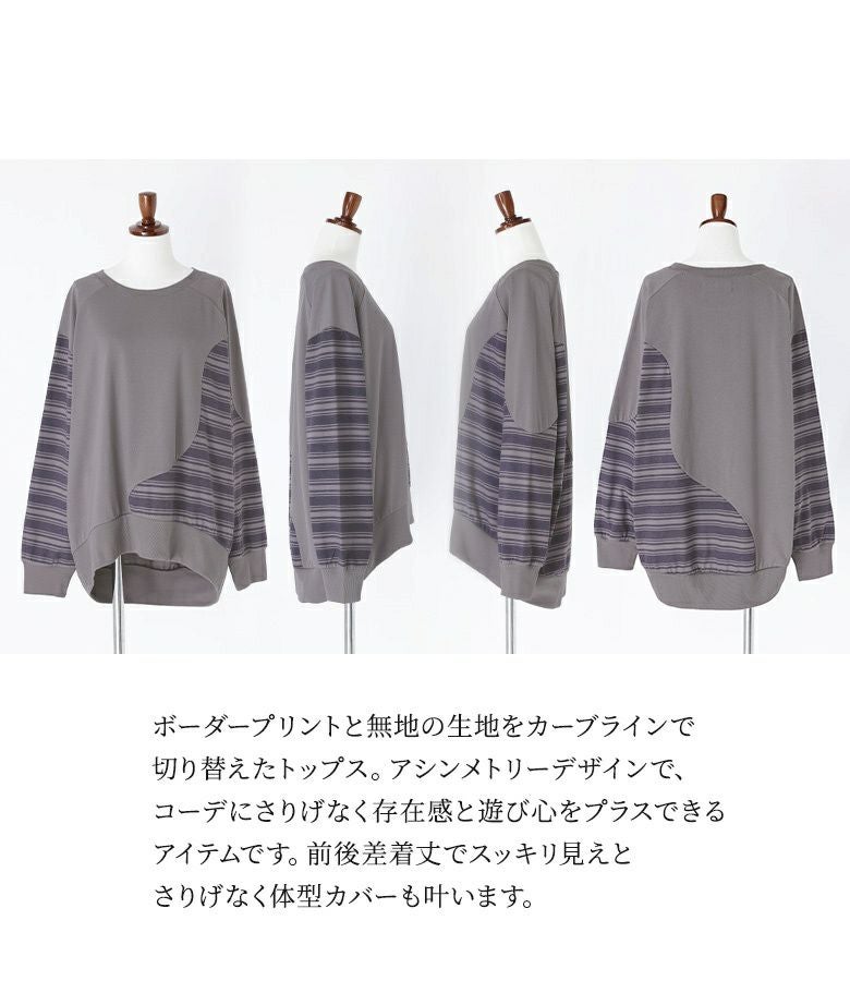 ボーダープリント×無地をカーブラインで切り替えたデザインカットソー。
