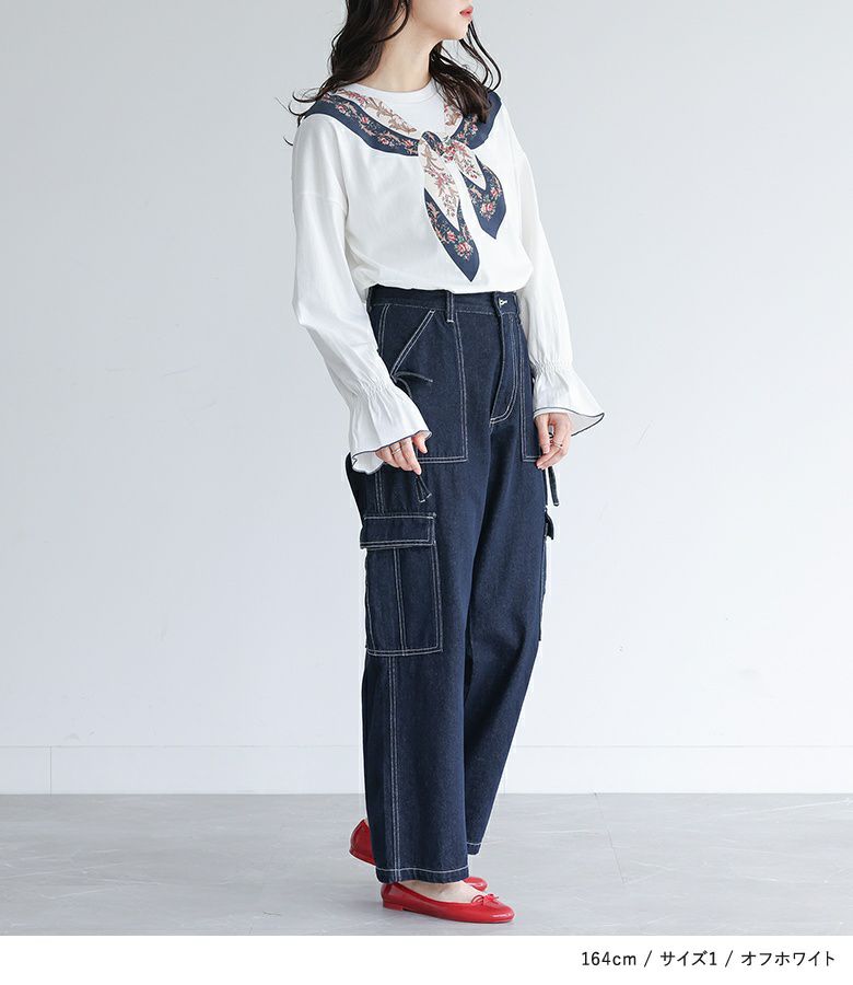 【普段着用】 Tops: LL Bottoms:LL | 【1】 袖丈:手の甲真ん中位 着丈:ヒップ真ん中位 腕周り:ややゆったり バスト:ややゆったり 全体:ややゆったり
