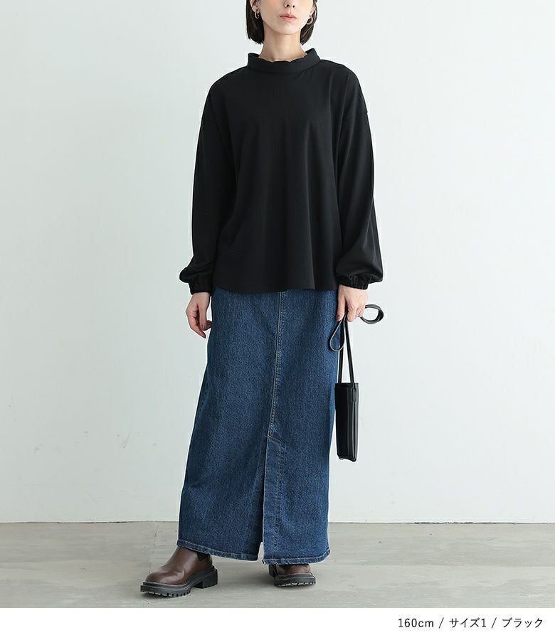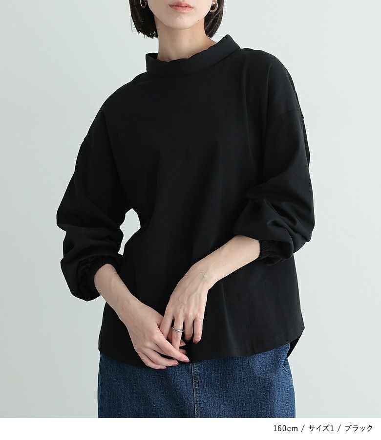 【普段着用】 Tops: M Bottoms: M/L | 【1】 袖丈:手の甲にかかる位 着丈:ヒップがすっぽり隠れる位 腕周り:ゆったり バスト:ゆったり 全体:スッキリ