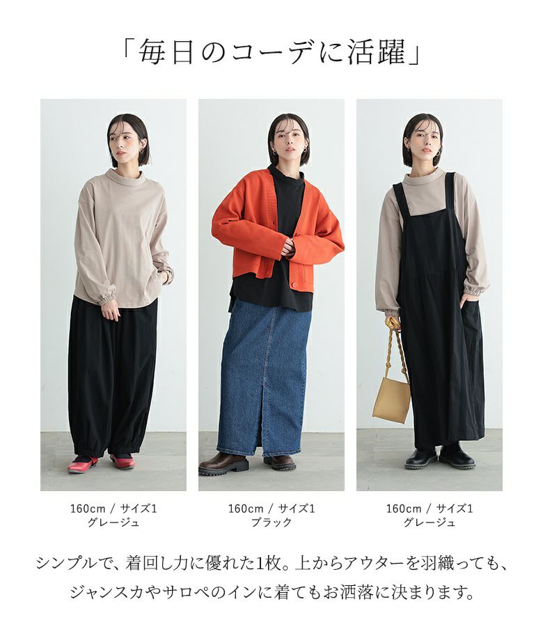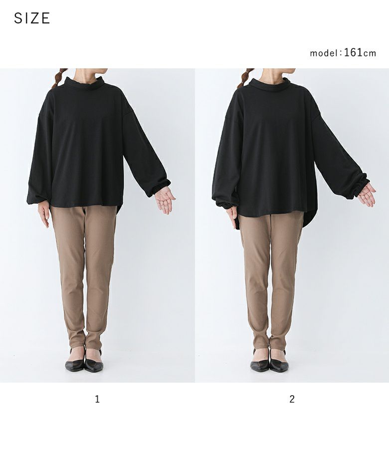 【普段着用】 Tops:S/M Bottoms: M/L | 【1】 袖丈:手首位 着丈:ヒップがちょうど隠れる位 腕周り:ややゆったり バスト:ややゆったり 全体:ゆったり