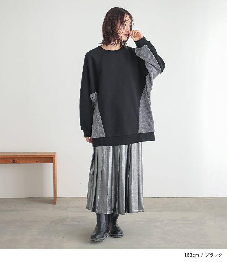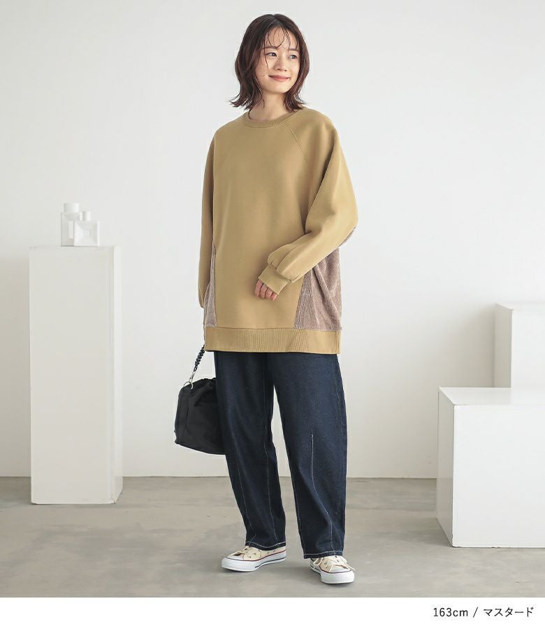 『n'OrLABEL裏起毛異素材切り替えチュニックスウェット』