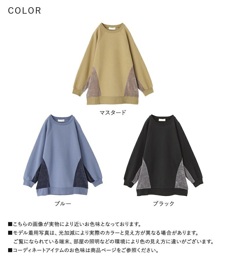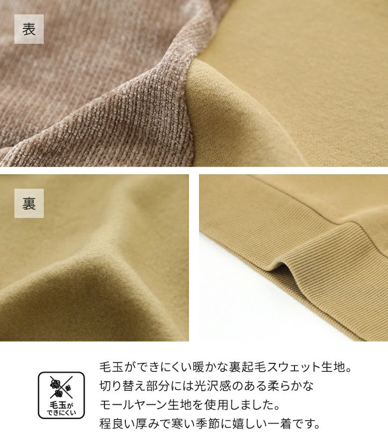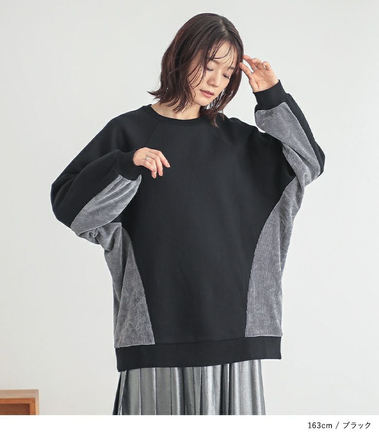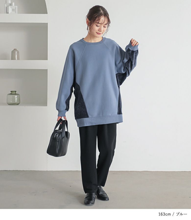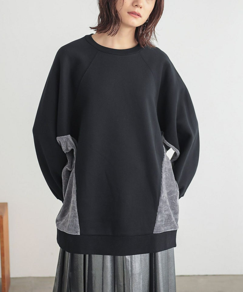 脇から袖下部分を異素材で切り替えた裏起毛スウェット。