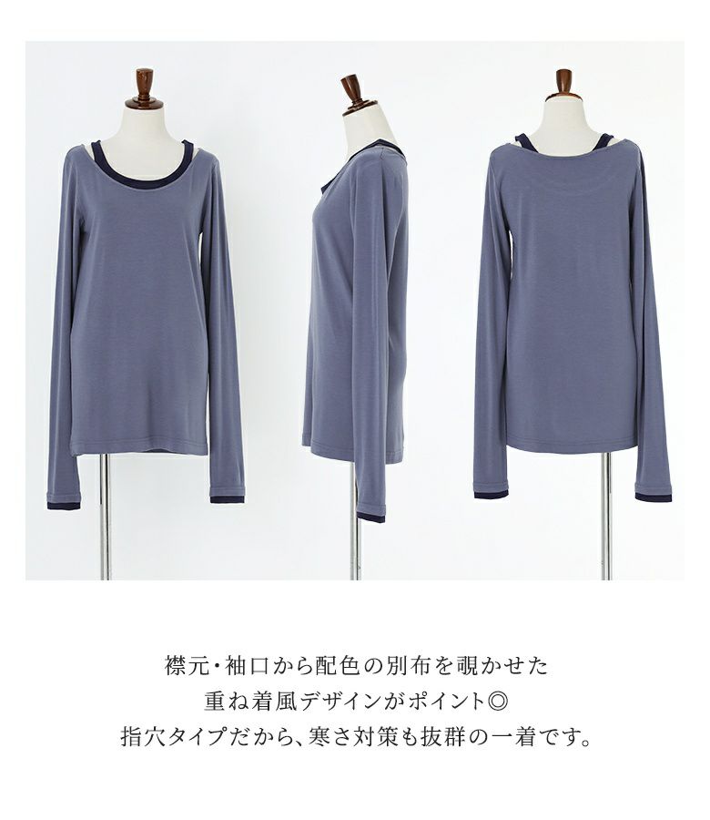 [ID]ten0135[n'OrLABELレイヤード風あったか指穴ロンT]