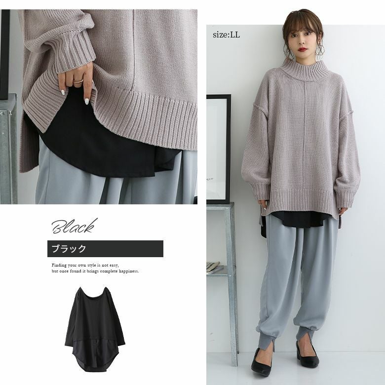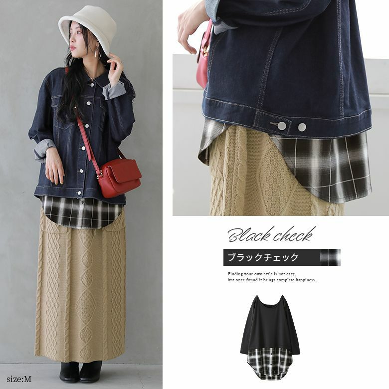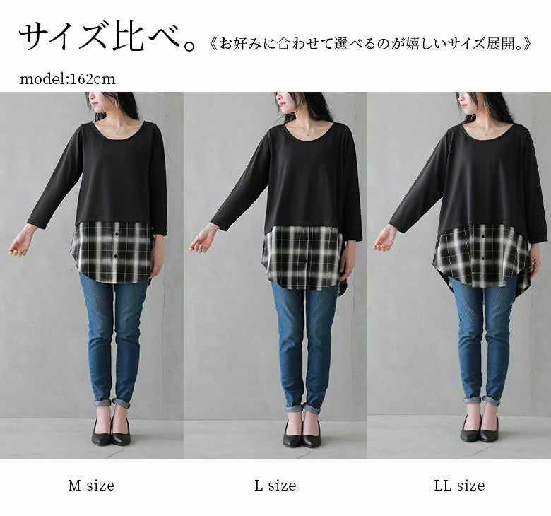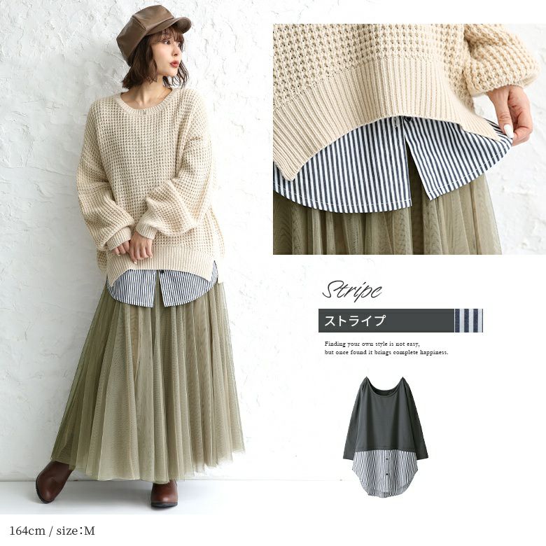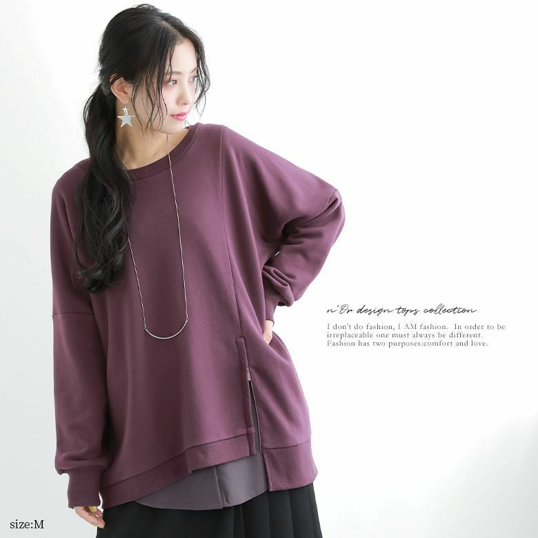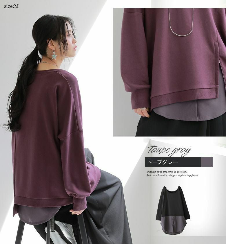 カットソー部分はふんわり伸縮性のある裏起毛素材で暖かく、裾シャツ部分は本当のシャツを着ているような開閉できるボタン付き。重ね着してももたつかない異素材使いが嬉しい♪