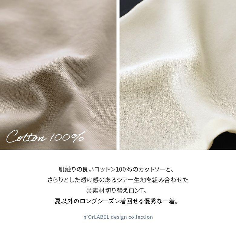 『n'OrLABELシアー×カットソー異素材MIXロンT』