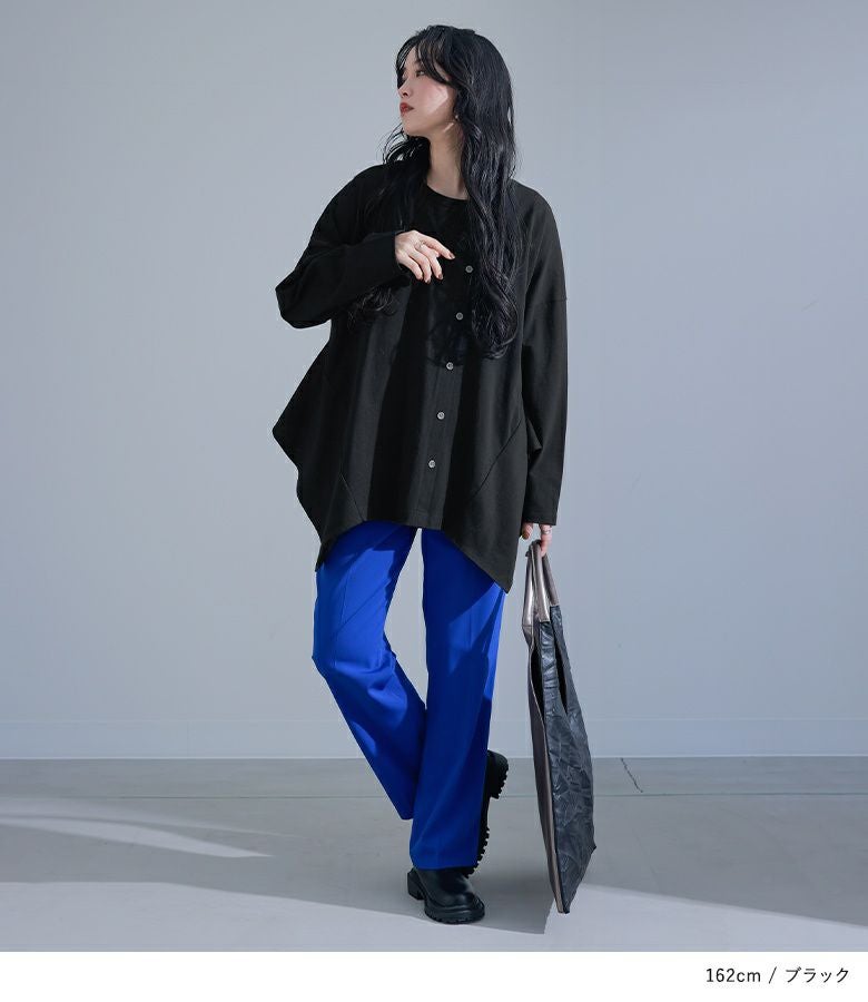 デザイン性がありながらシンプルなので、一枚でさらっと着られてパンツにもスカートにも合わせやすいトップスです。