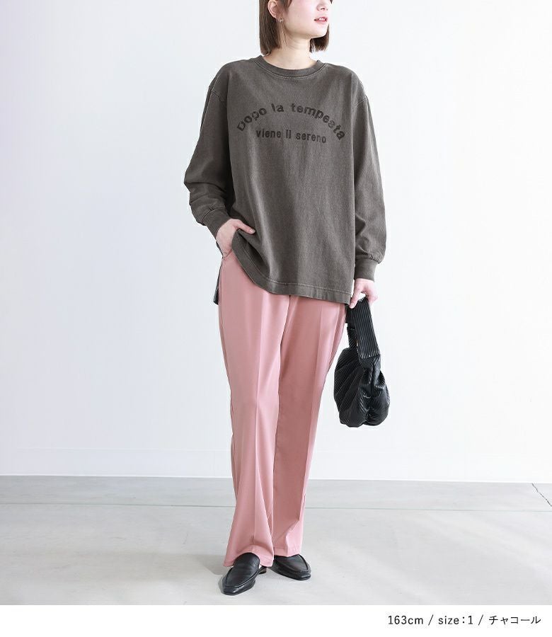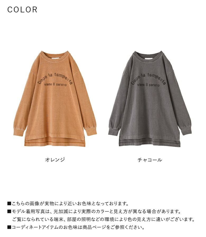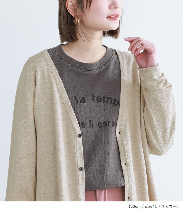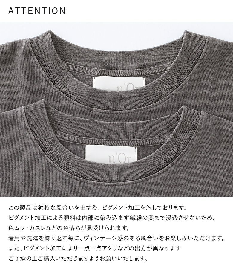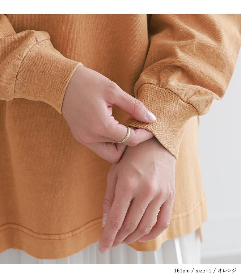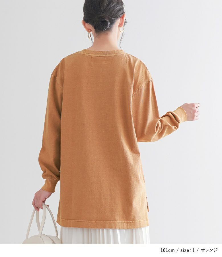 コットン100%の素肌で着ても心地の良い肌触り。着るほどにかすれ感や味が出るピグメント加工を施した、こなれ感たっぷりの生地感です。透け感なく程よい厚みで、ロングシーズン活躍します。