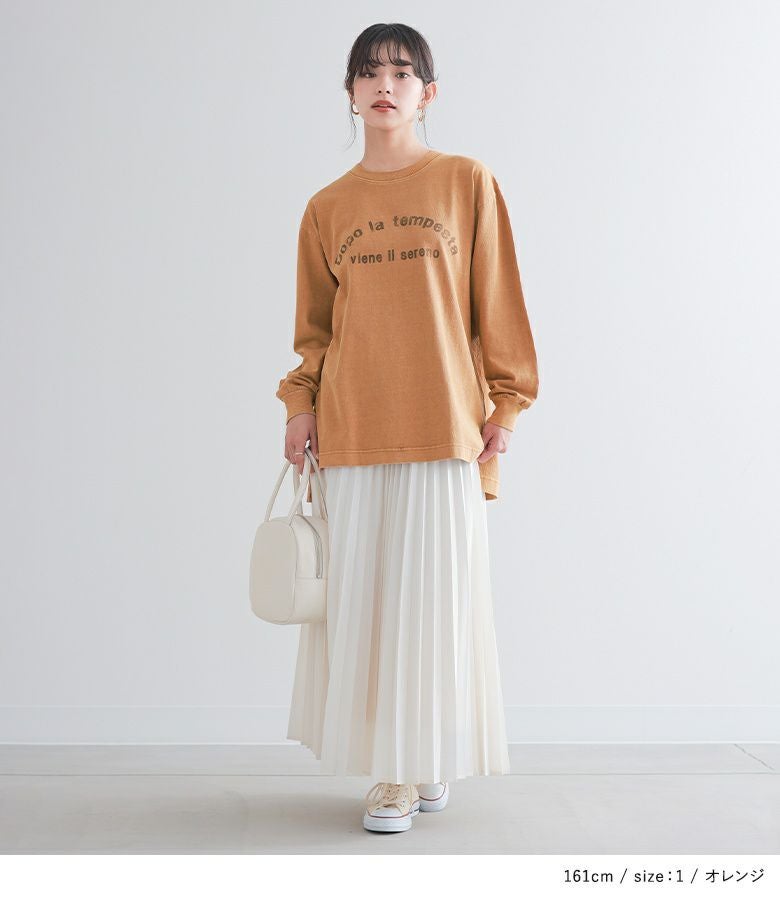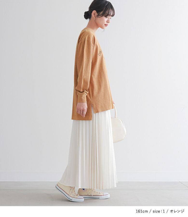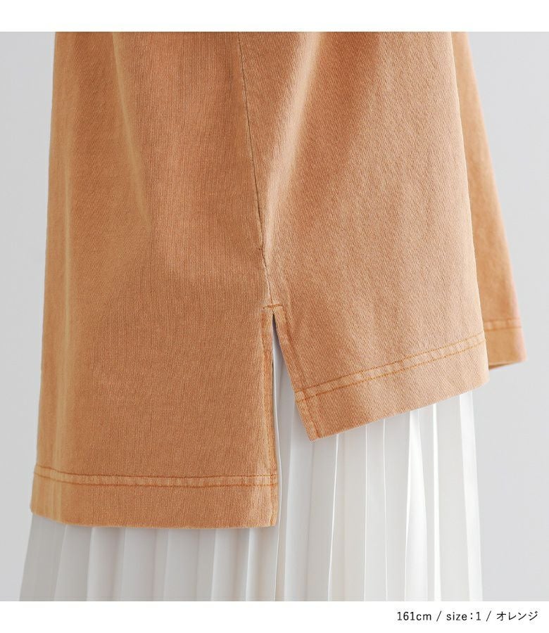 前後差のある脇スリットでどんなボトムスとも相性抜群◎スカートと合わせて大人カジュアルに、パンツにインしてスッキリ着るのもおすすめ。アウターの下から覗かせても、コーデにヴィンテージ感をプラスします。