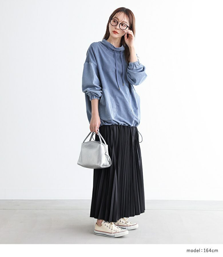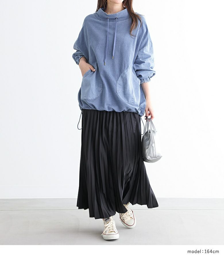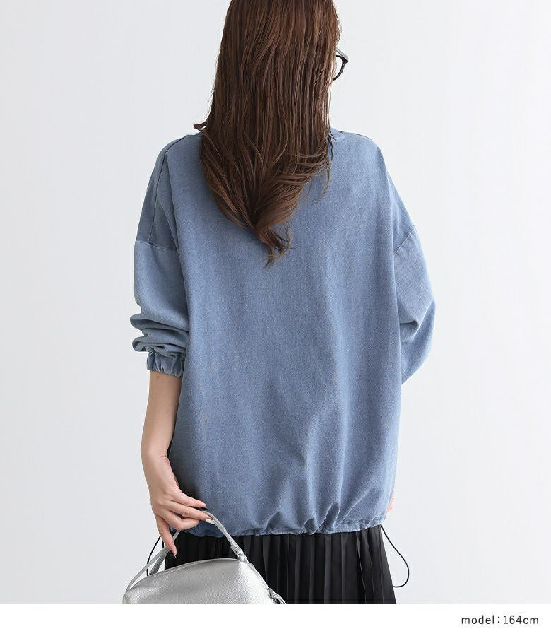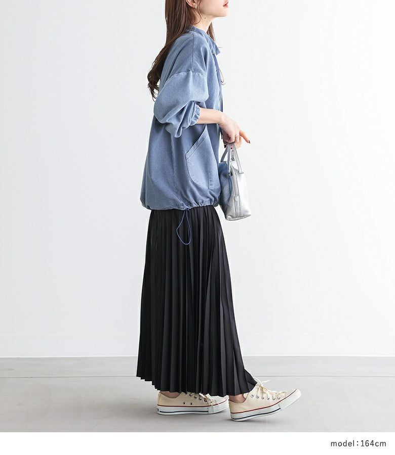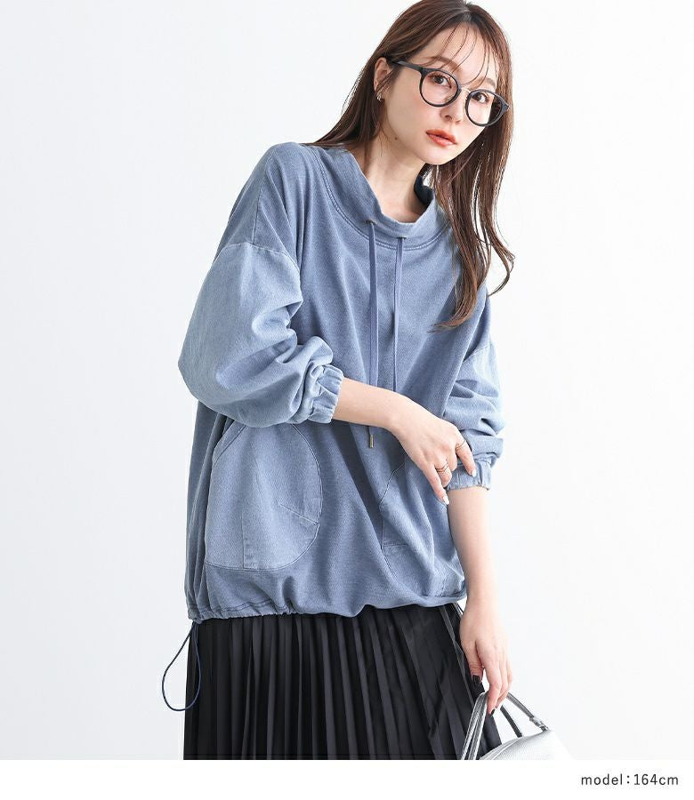 裾に絞れるドロスト付きなので、気分やコーデによって着方のアレンジが可能。カラーパンツと合わせてゆるっと着たり、スカート合わせでドロストを絞りシルエットで遊ぶのもおすすめです。