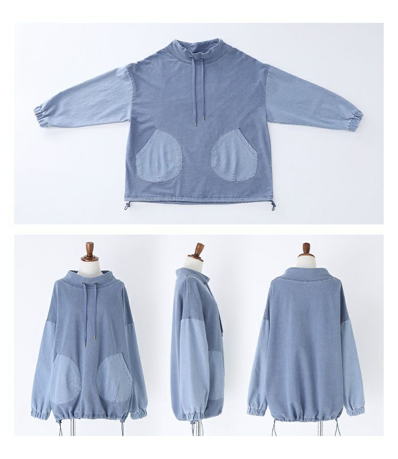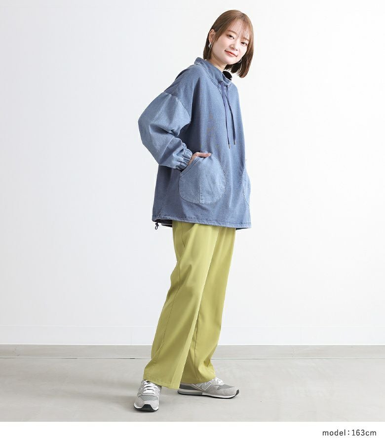 抜け感のあるスタンドネックと微配色デザインがお洒落なカジュアルスタイルに仕立てるプルオーバー。大きめのポケットがアクセントになり、ゆるっと着こなせるのも嬉しいポイントです。