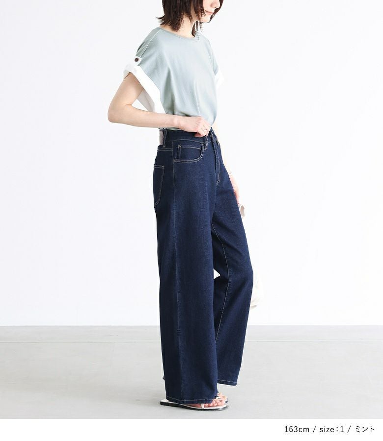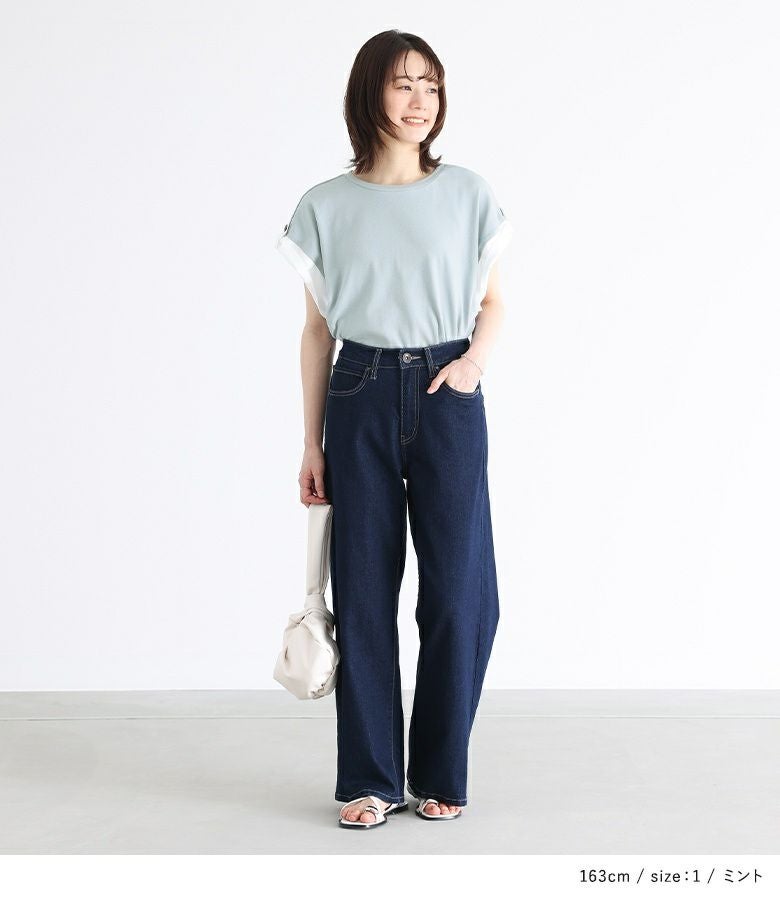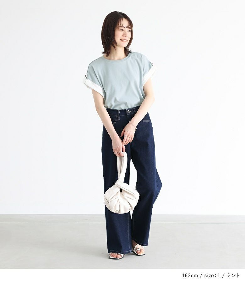 袖口を折り返したようなデザインが入ったトップス。程よく肩先を隠す袖丈が、涼やかにこなれて見せます。マチ付きのアームホールで、インナーが見えにくく着用できる嬉しい仕様です。