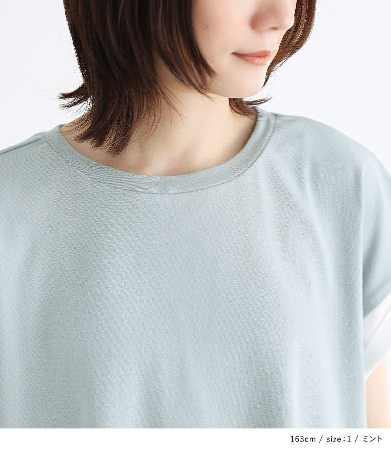 柔らかく心地の良い肌触りのコットン混カットソー生地。袖はキレイめのさらりとした生地で、快適にご着用いただけます。