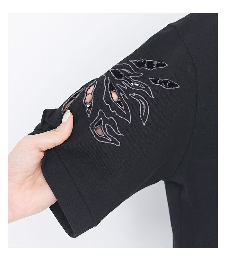 選べるM~3Lサイズ展開!オリジナルの刺繍を施した袖カットTシャツ。