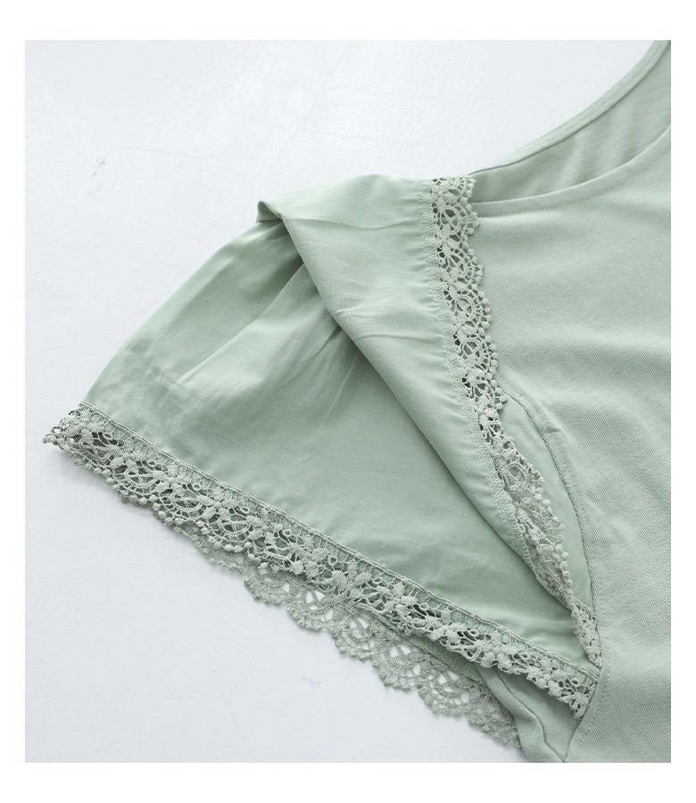 本体には肌触りの優しいコットン素材を、レース部分には軽やかなポリエステル素材を使用。程よい厚みで、さらりとご着用いただけます。
