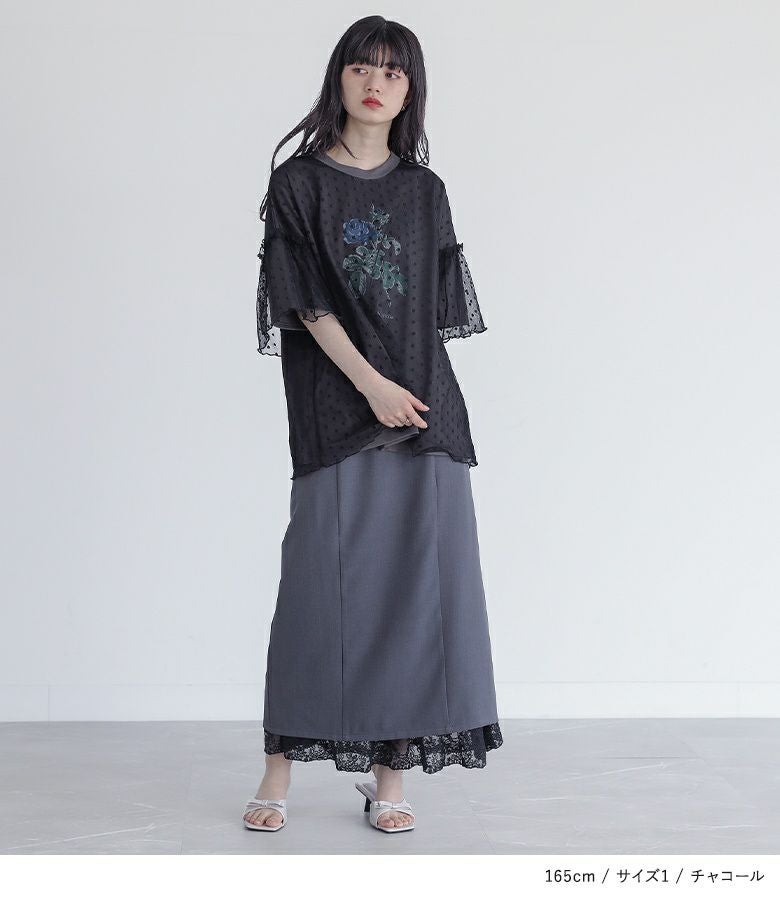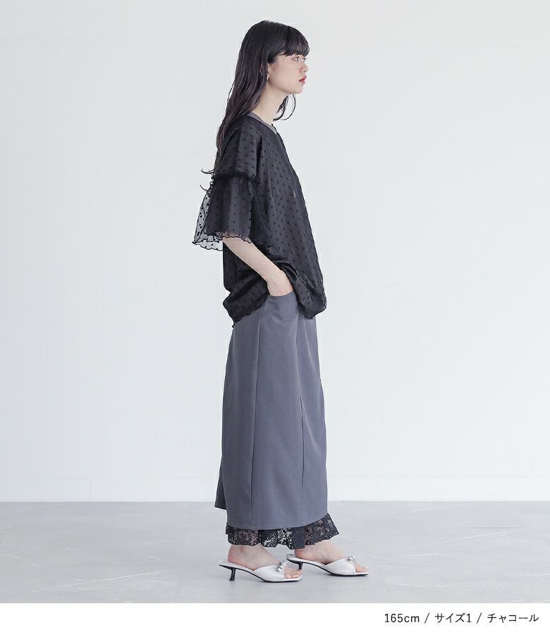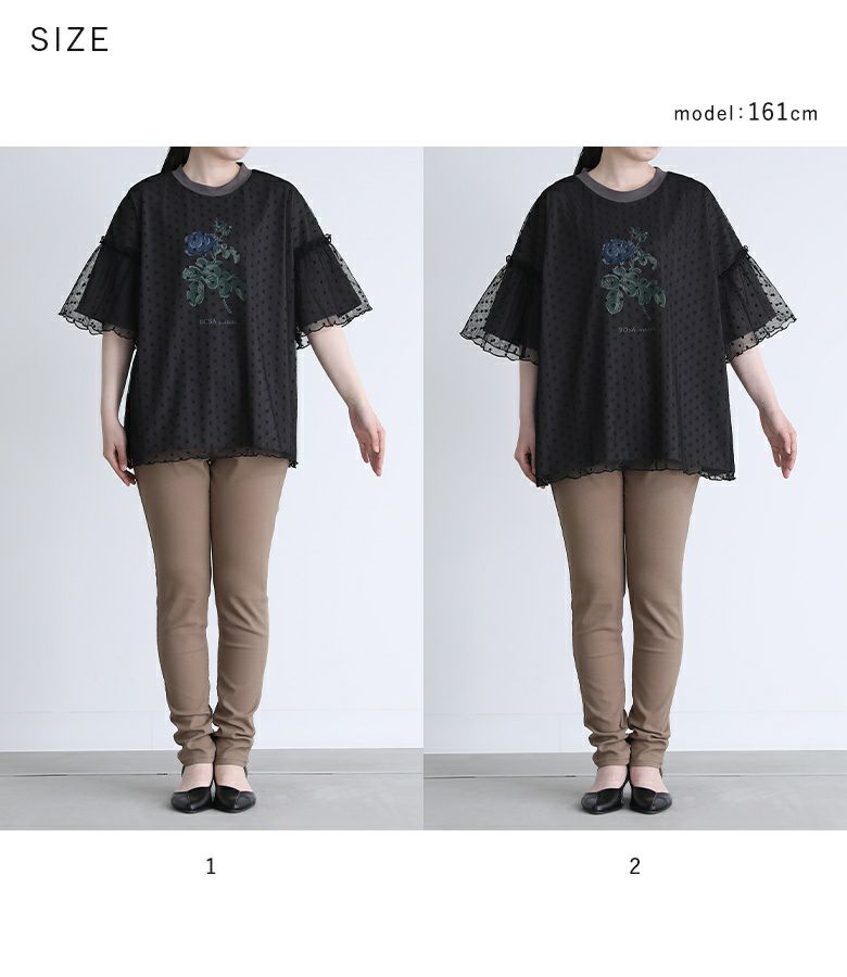 【普段着用】 Tops: M Bottoms: M | 【1】 袖丈:ちょうどひじ位 着丈:ヒップ下少し見える位 腕周り:ややゆったり バスト:ややゆったり 全体:ややゆったり