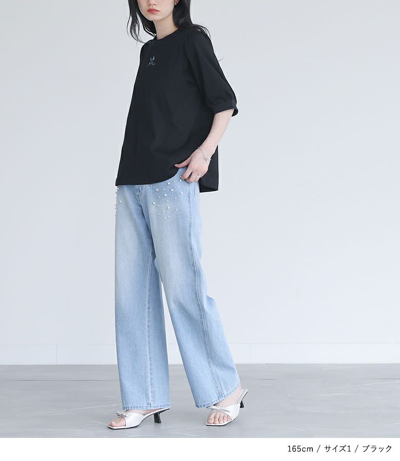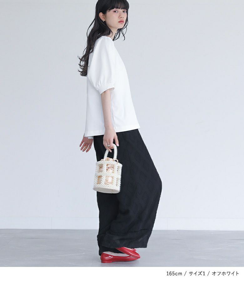 【普段着用】 Tops:M/L Bottoms: M/L | 【1】 袖丈:ひじ上3cm位 着丈:ヒップにかかる位 腕周り:ややゆったり バスト:ややゆったり 全体:ややゆったり