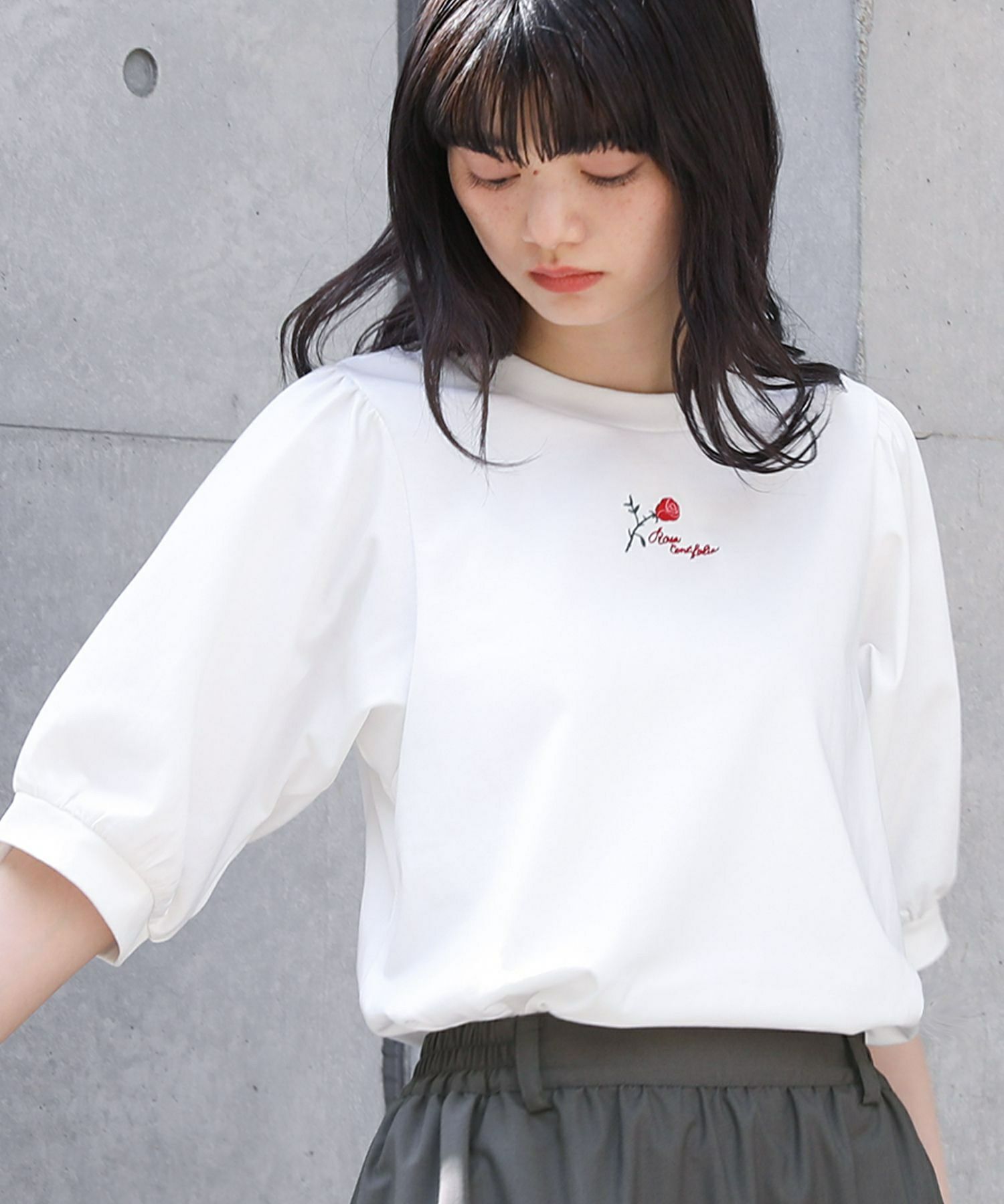 【普段着用】 Tops: M Bottoms: S/M | 【1】 袖丈:ちょうどひじ位 着丈:ヒップ真ん中位 腕周り:ややゆったり バスト:ややゆったり 全体:ややゆったり