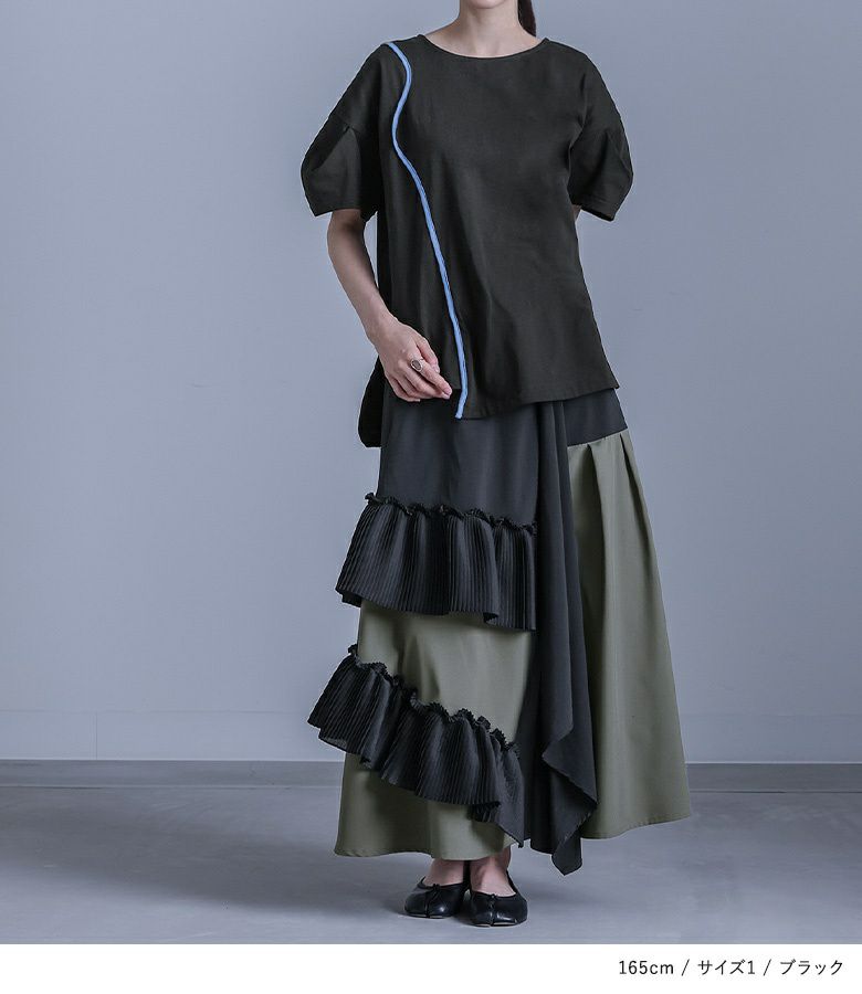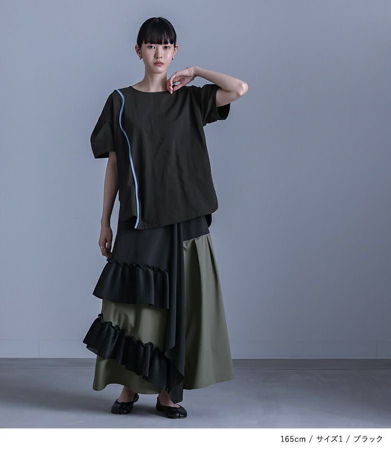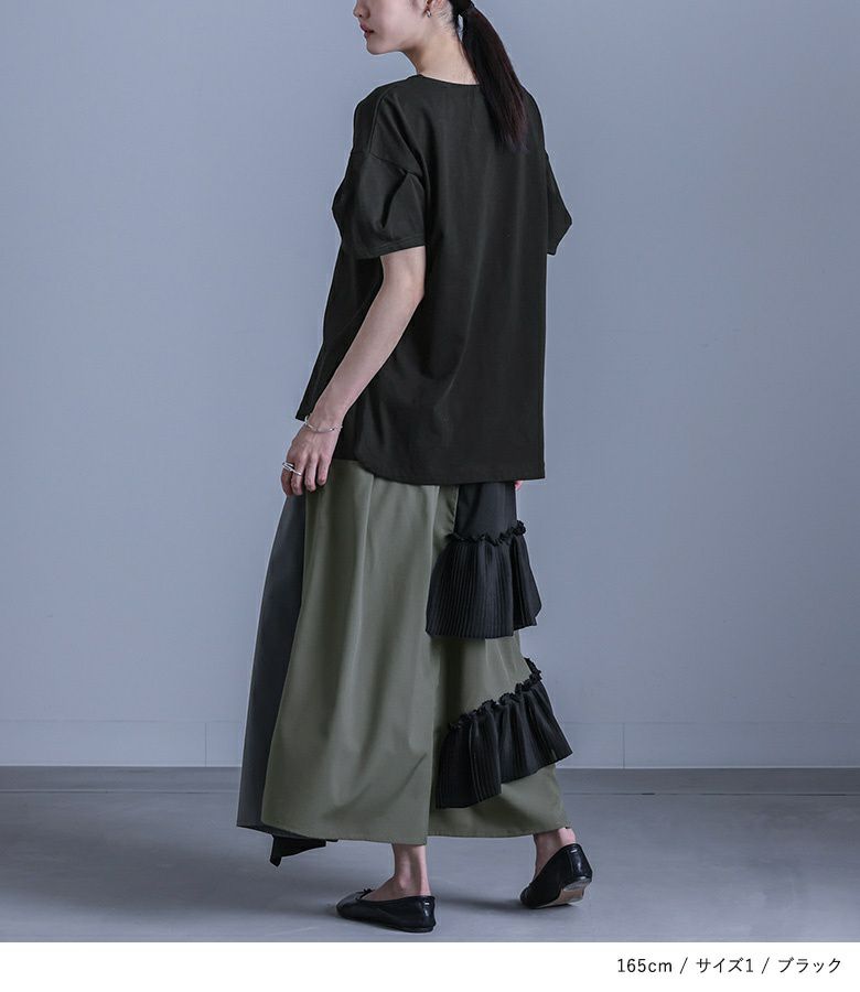 【普段着用】 Tops: M Bottoms: M/L | 【1】 袖丈:ひじ上3cm位 着丈:ヒップがすっぽり隠れる位 腕周り:ややゆったり バスト:ゆったり 全体:ゆったり