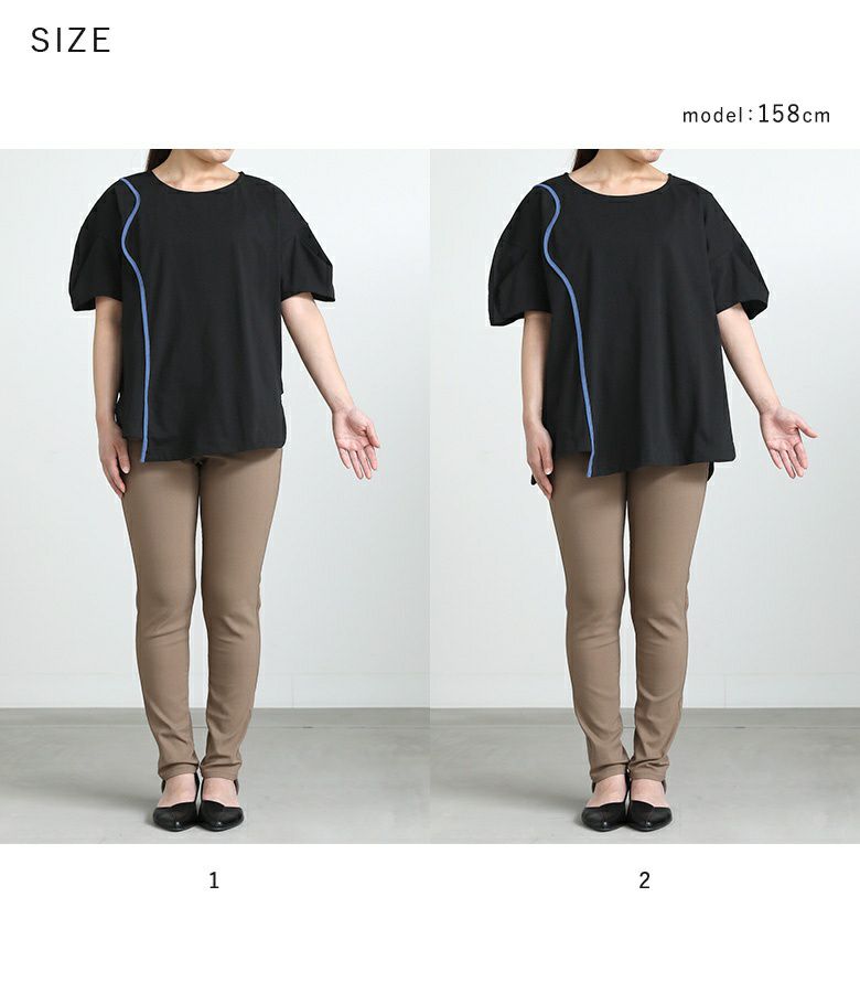 【普段着用】 Tops: S/M Bottoms: S/M | 【1】 袖丈:ひじ上5cm位 着丈:ヒップがちょうど隠れる位 腕周り:ややゆったり バスト:ややゆったり 全体:ややゆったり