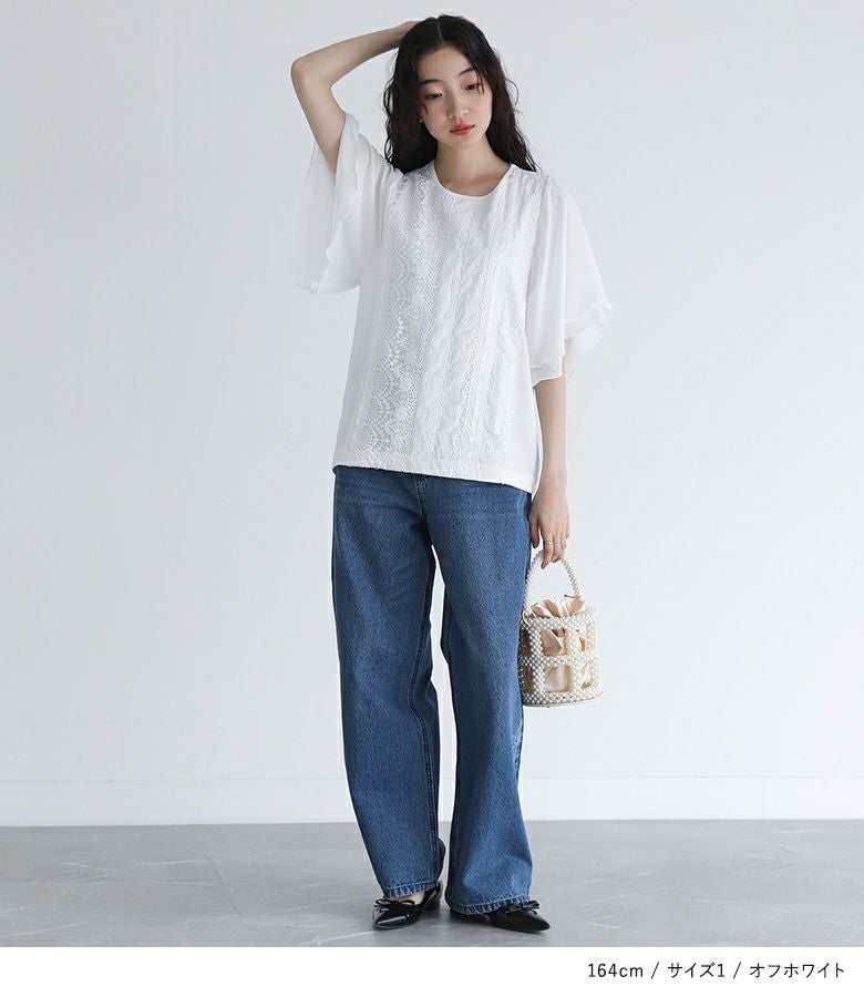 【普段着用】 Tops: L Bottoms: L | 【1】 袖丈:ひじ上5cm位 着丈:ヒップ真ん中位 腕周り:ややゆったり バスト:ややゆったり 全体:ややゆったり