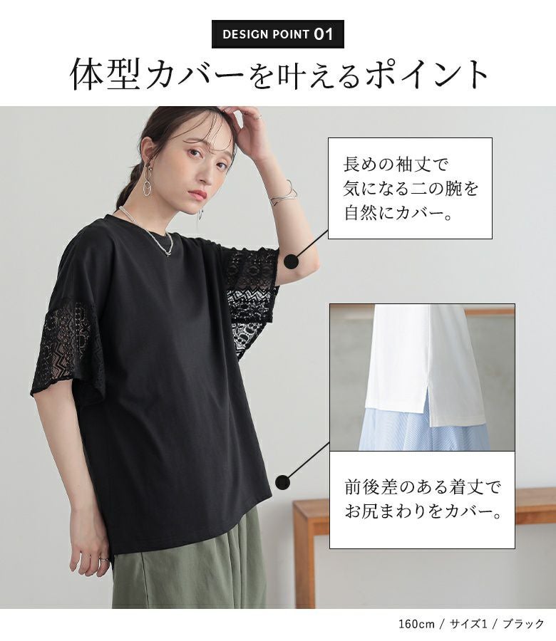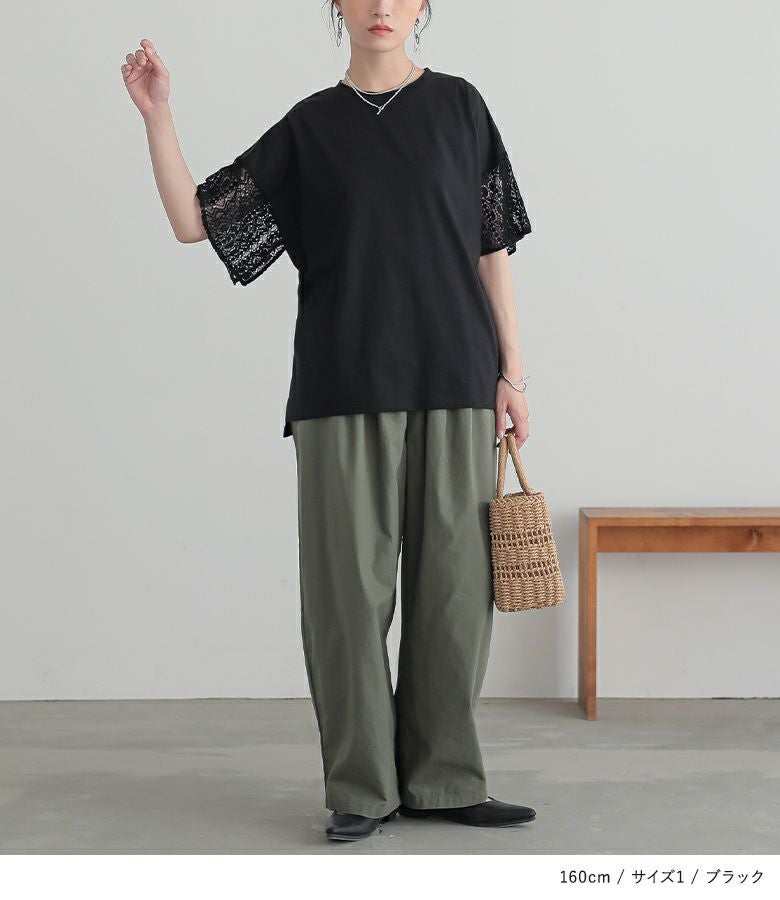 【普段着用】 Tops: L Bottoms: L | 【1】 袖丈:ひじ上3cm位 着丈:ヒップ下少し見える位 腕周り:ややゆったり バスト:ややゆったり 全体:ややゆったり