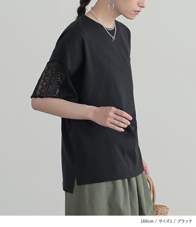 【普段着用】 Tops: M Bottoms: M/L | 【1】 袖丈:ちょうどひじ位 着丈:ヒップ下少し見える位 腕周り:ゆったり バスト:ゆったり 全体:ややゆったり