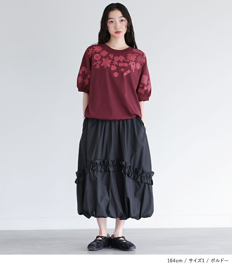 【普段着用】 Tops: M Bottoms: M/L | 【1】 袖丈:ちょうどひじ位 着丈:太もも真ん中位 腕周り:ややゆったり バスト:ややゆったり 全体:ややゆったり