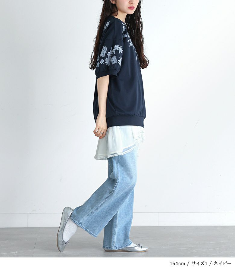 【普段着用】 Tops: LL Bottoms:LL | 【1】 袖丈:ちょうどひじ位 着丈:ヒップ真ん中位 腕周り:ややゆったり バスト:ジャスト 全体:ジャスト