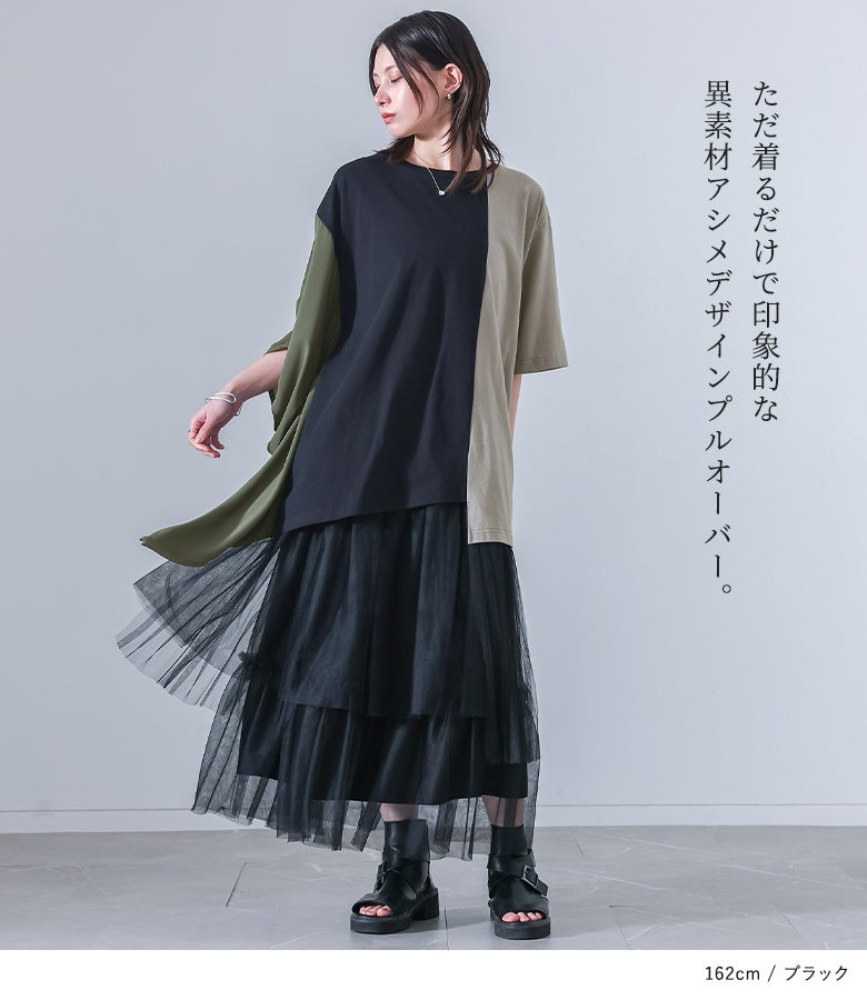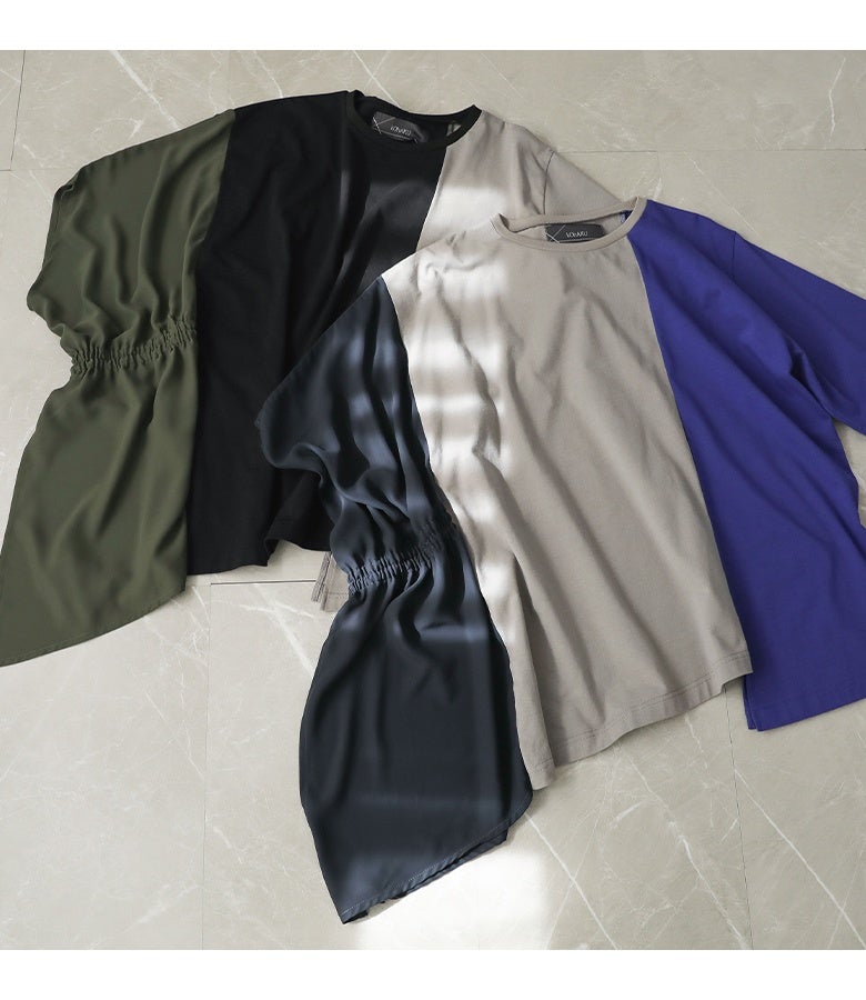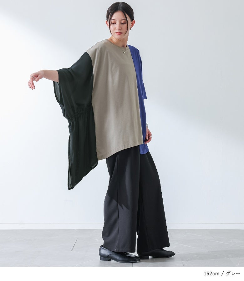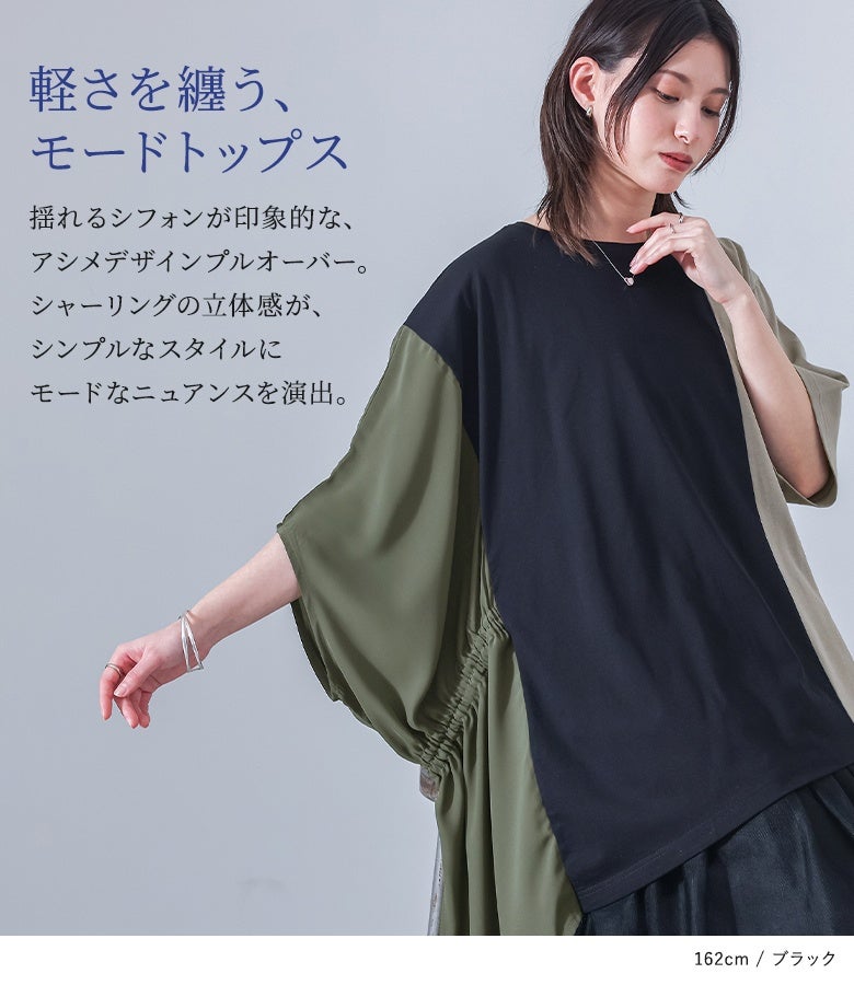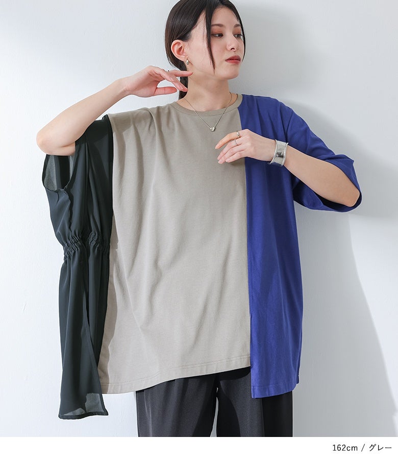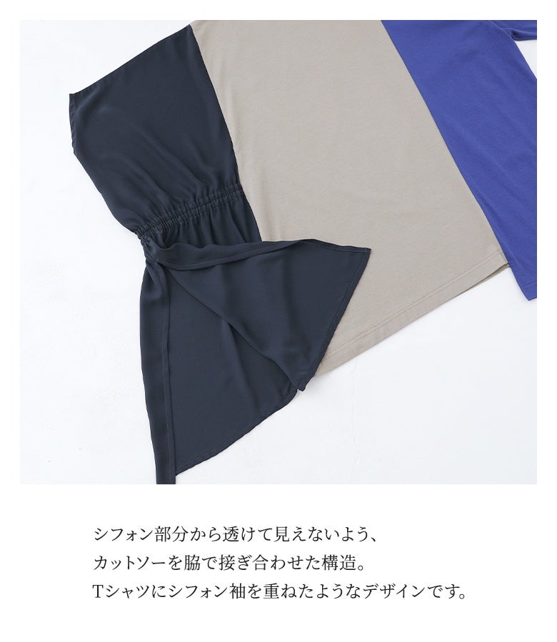 シフォン×カットソーの異素材を重ねたデザインプルオーバー。