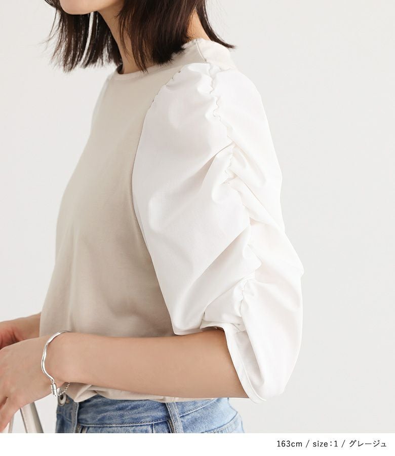 【普段着用】 Tops: M Bottoms: M/L | 【1】 袖丈:ちょうどひじが隠れる位 着丈:ヒップ真ん中より上位 腕周り:ややゆったり バスト:ややゆったり 全体:スッキリ