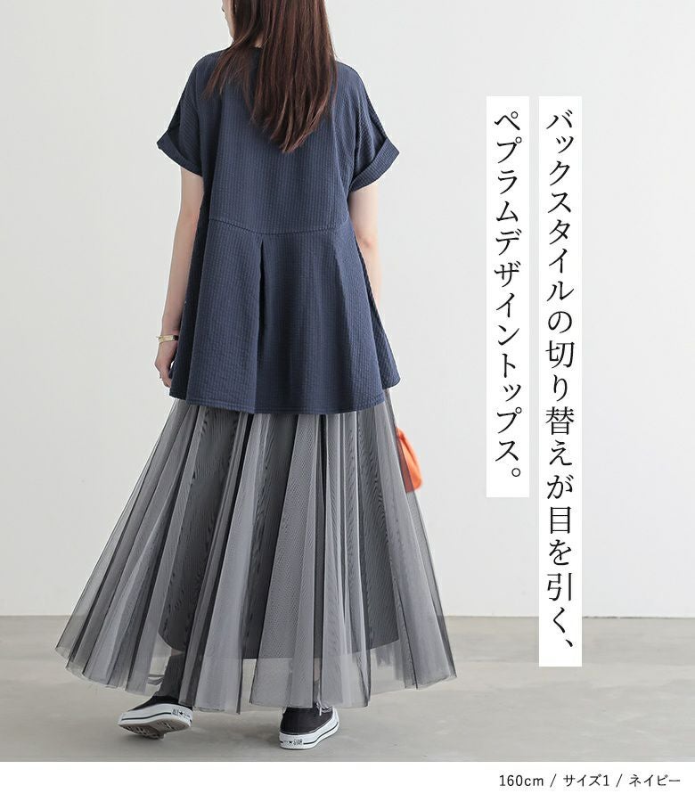 【2】 袖丈:二の腕真ん中位 着丈:ヒップ真ん中位 腕周り:ゆったり バスト:ゆったり 全体:ゆったり